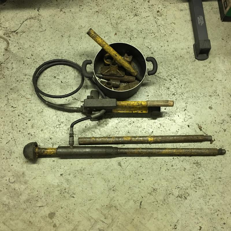 Ram hydraulic ram jack with attachments. Great for auto body, frame repair and construction components for lifting, pushing, bending and spreading.