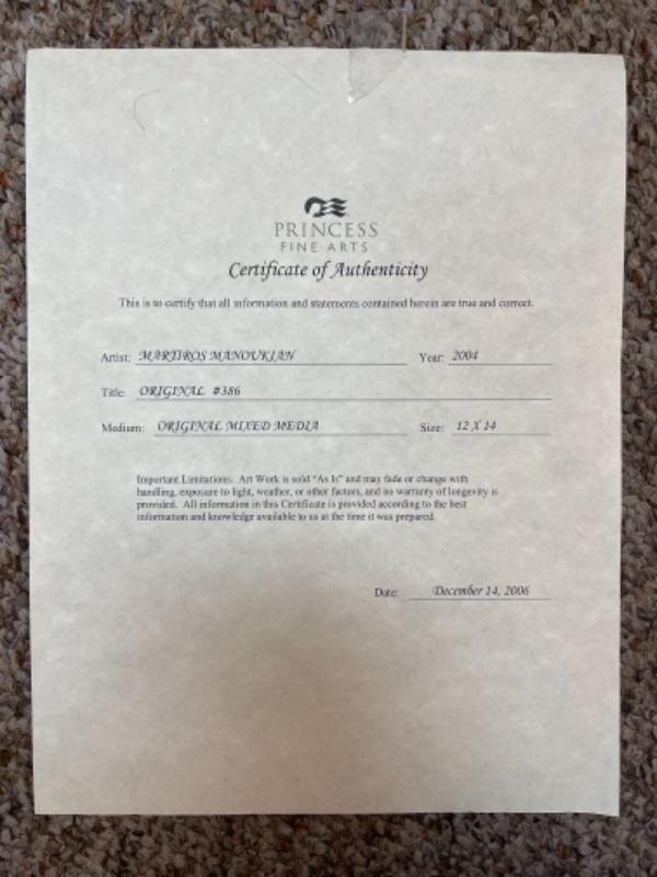 Lot 154. Original #386, Martiros Manoukian, 2003, Framed art, Mixed Media, Art Deco Styling, 12” x 14”, 28” x 25” Framed - -WAS $595““NOW $446.25