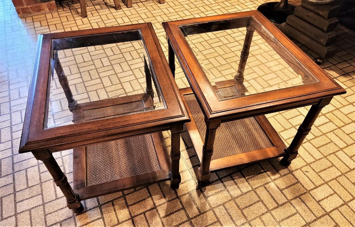 Lot #154 Pair Vintage Mid-Century Lamp Tables - beveled glass top