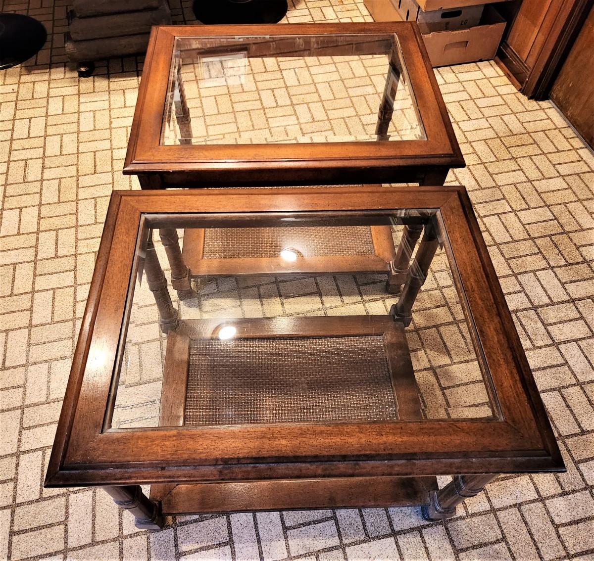 Lot #154  Pair Vintage Mid-Century Lamp Tables - beveled glass top