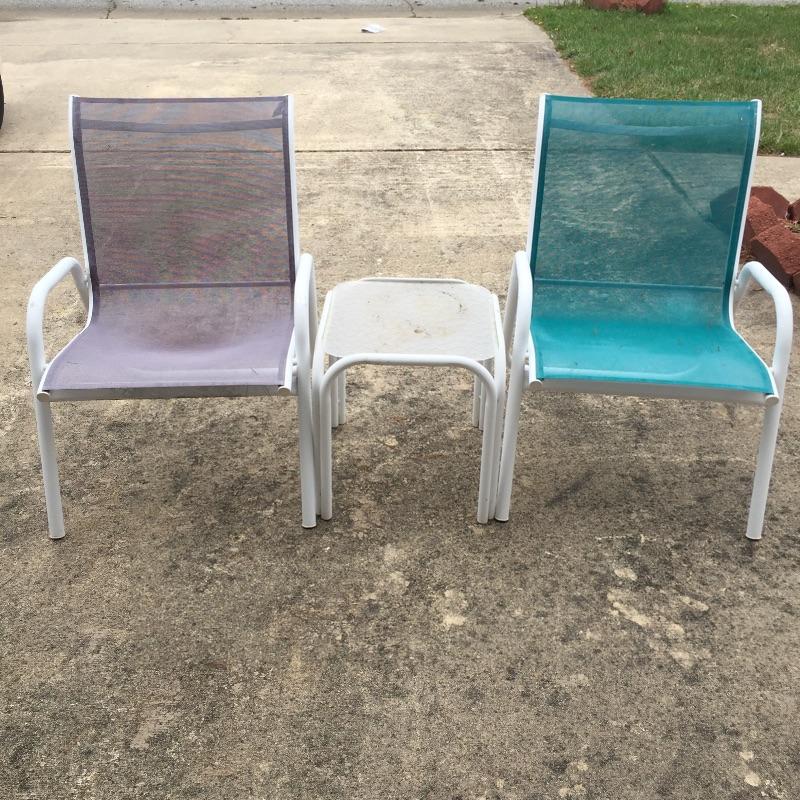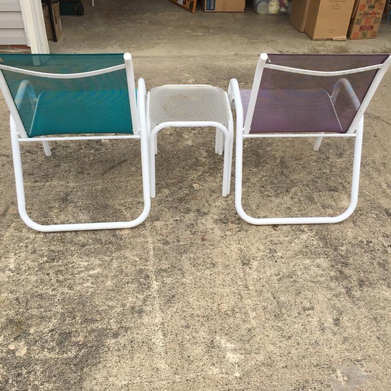 Pair of chairs and a small table. Lightweight and great for the porch.