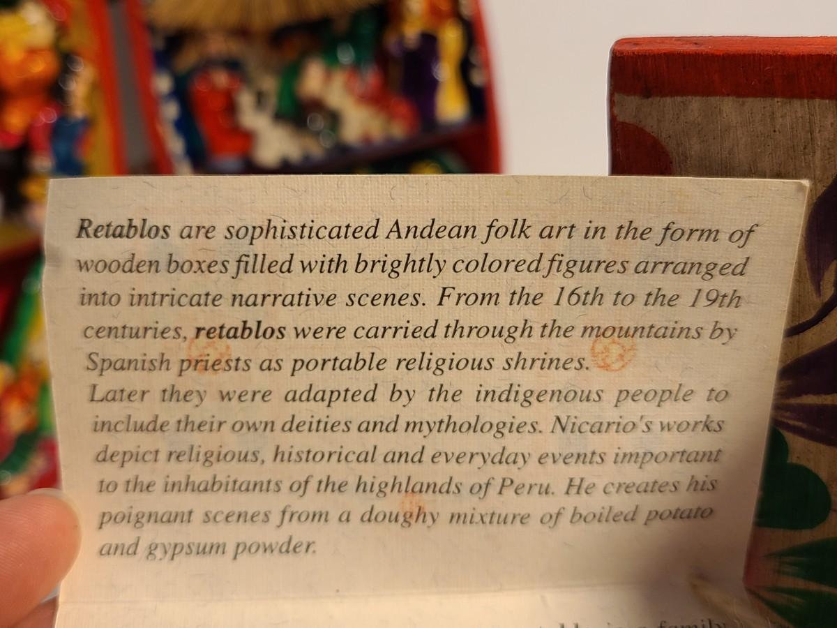 This is a type of Andrean Folk Art. Please see all pictures as they are the best representation of the items. The pictures show condition, measurements if taken, and what is included in the lot. Due to the large amount that we photograph and the time frame, we are not always able to take measurements. All items unless noted, are pre-owned and have been used. If you purchased furniture, you must bring help. We do not allow one person to carry large furniture out on their own. Bring help, tools and a truck for the safety of our client’s homes, and your personal safety. Company policy. Thank you.