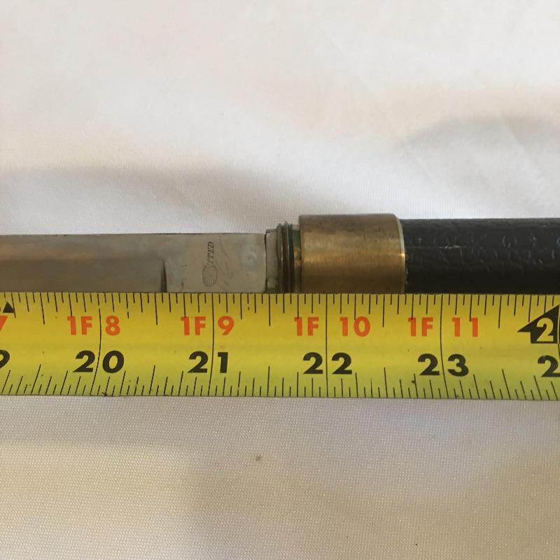 This unusual United brand cane has a sword hidden inside that has a stainless steel blade. The cane that gives new meaning to looking sharp. Be aware that it is a bit heavy to use as a cane.