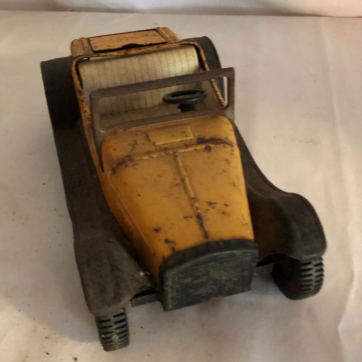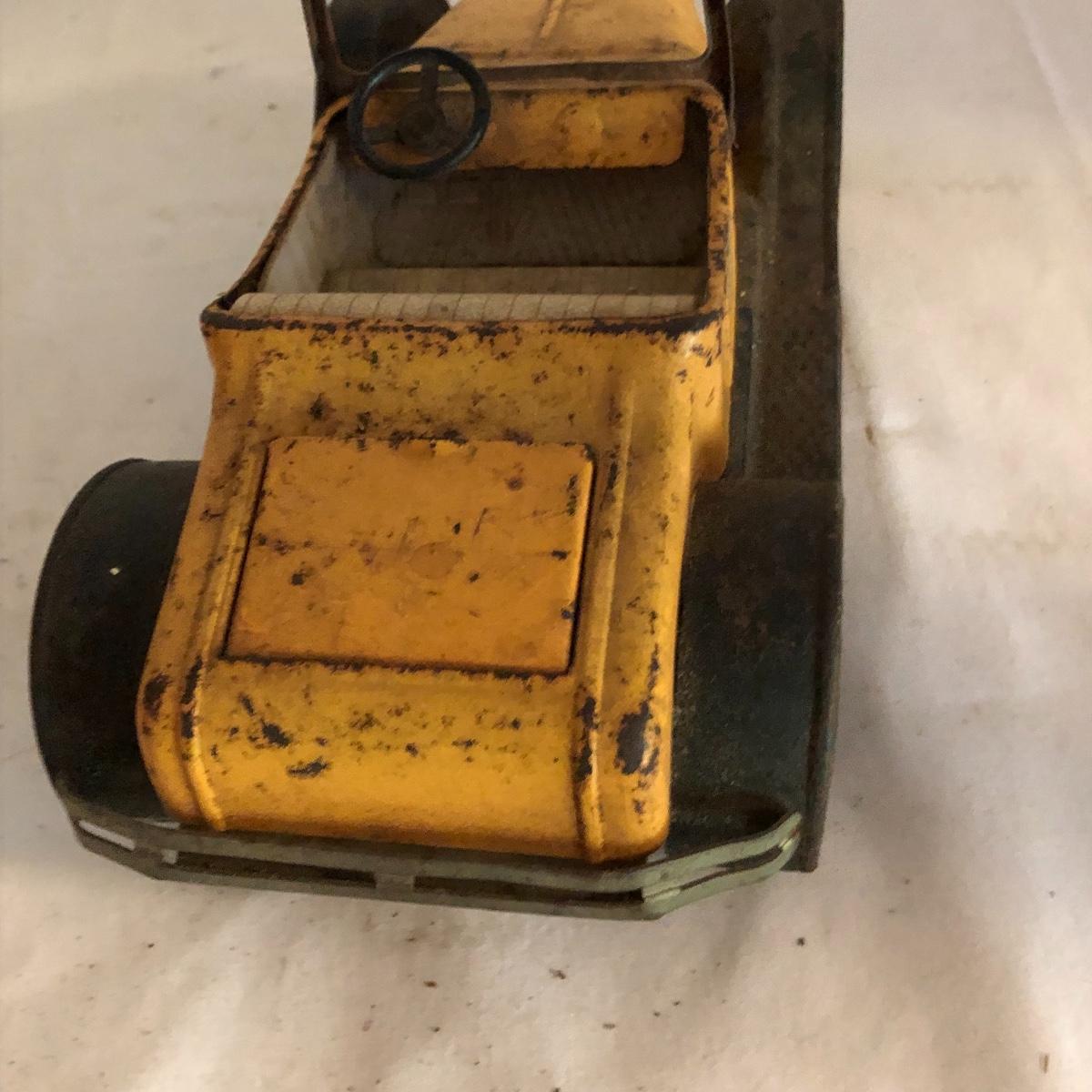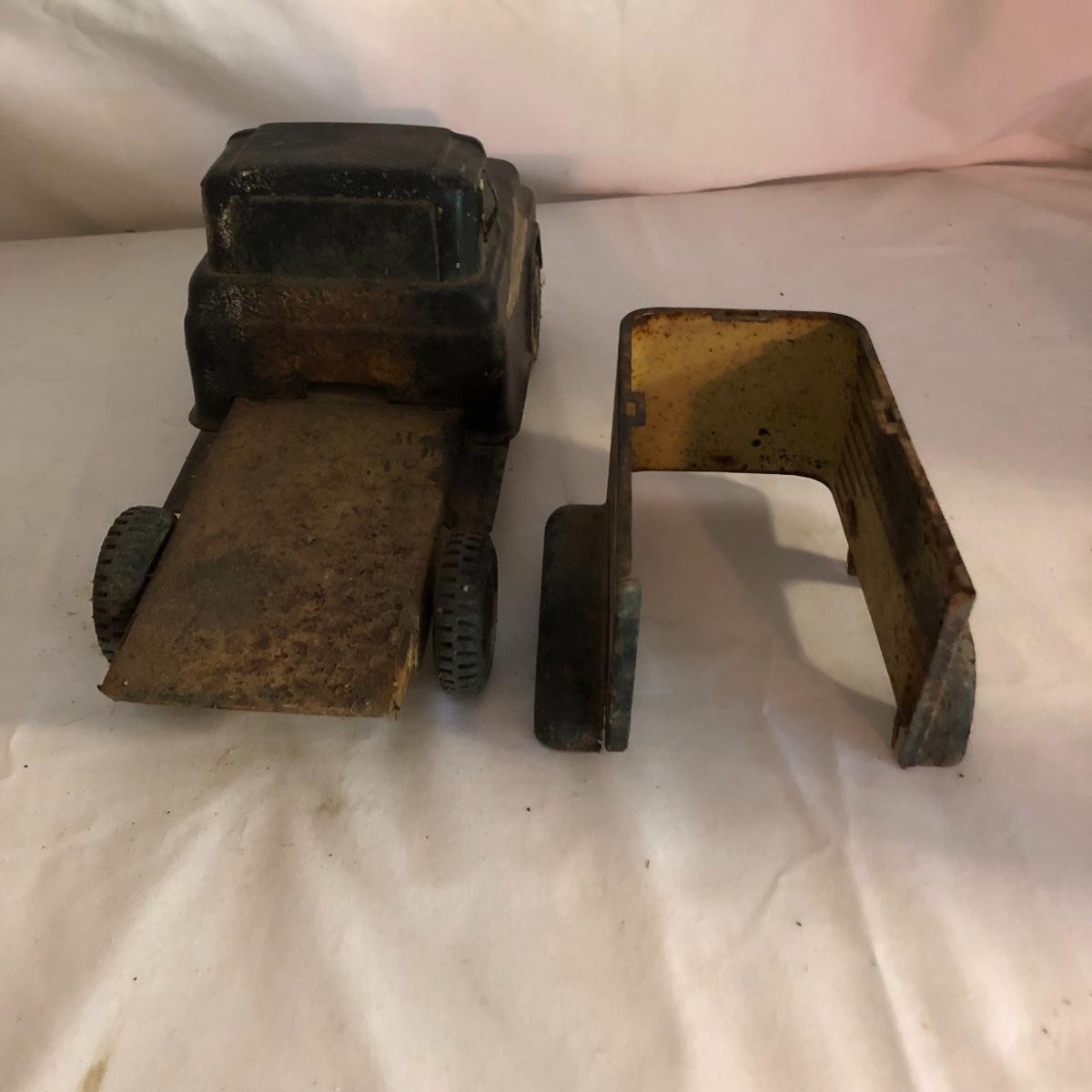 The yellow convertible car was made by Nylint, name on the truck is hard to decipher. Both vehicles are vintage and metal collectors items. The truck has a lot more rust than the car.