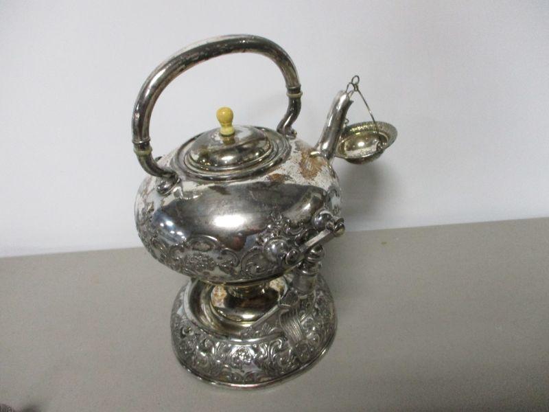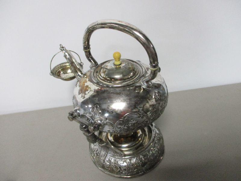 Lot 154 - Victorian Wilcox Quadruple Silver Plate Tea Pot W/Stand & Strainer