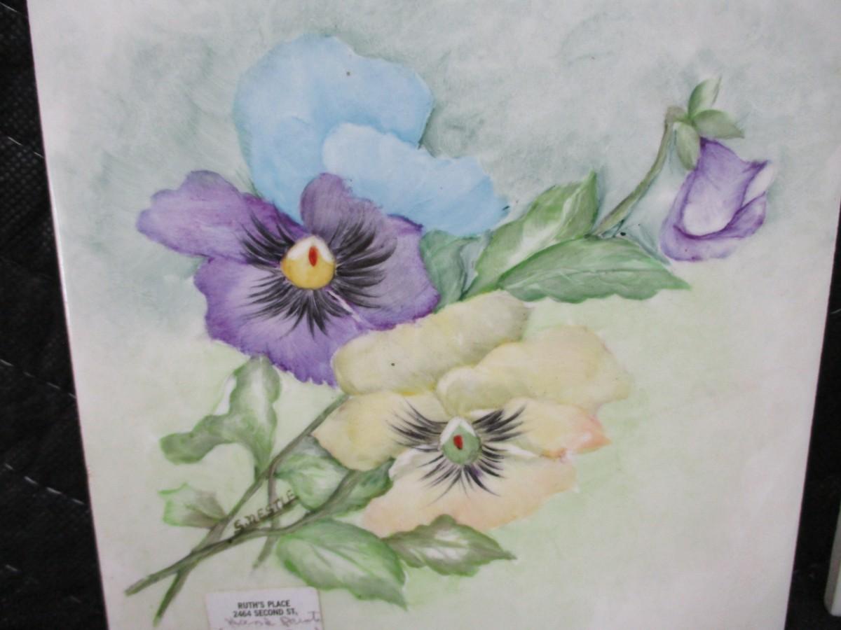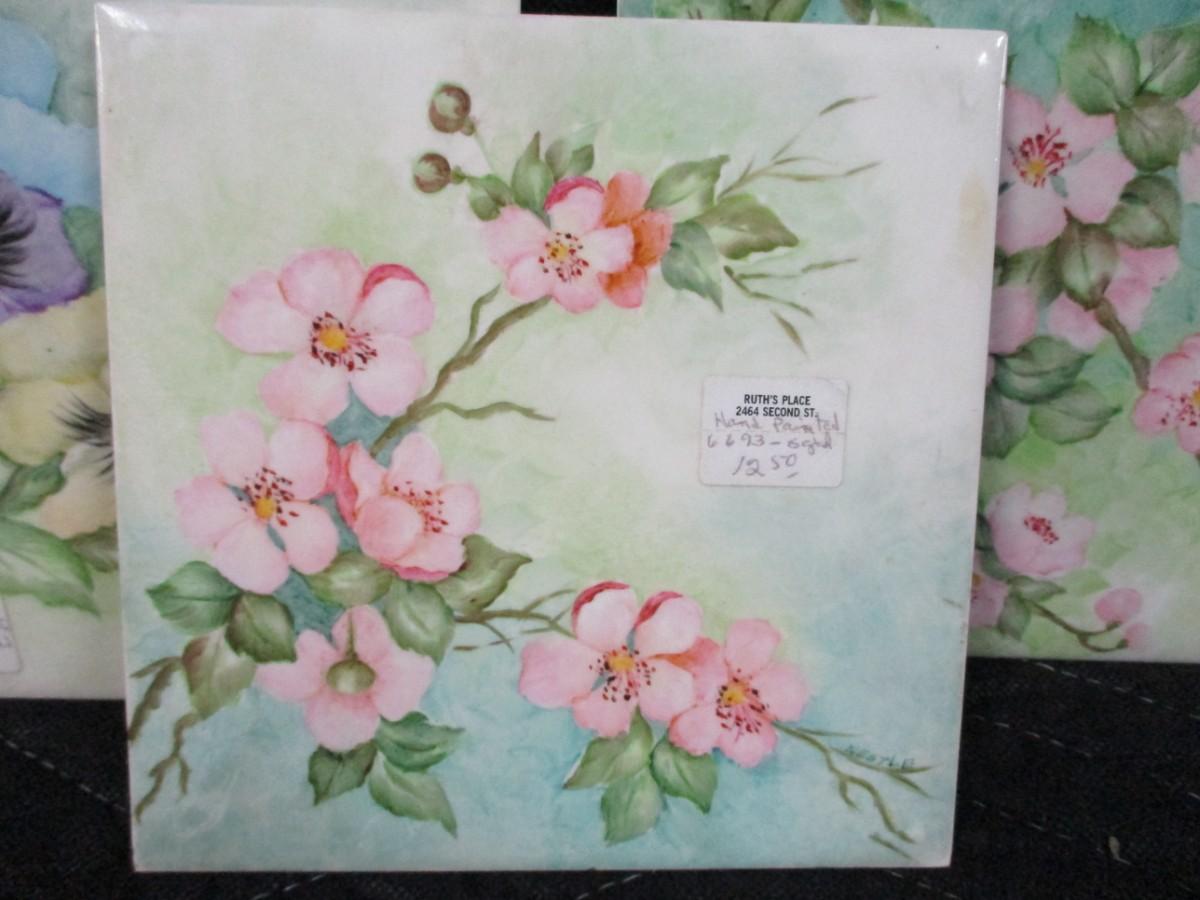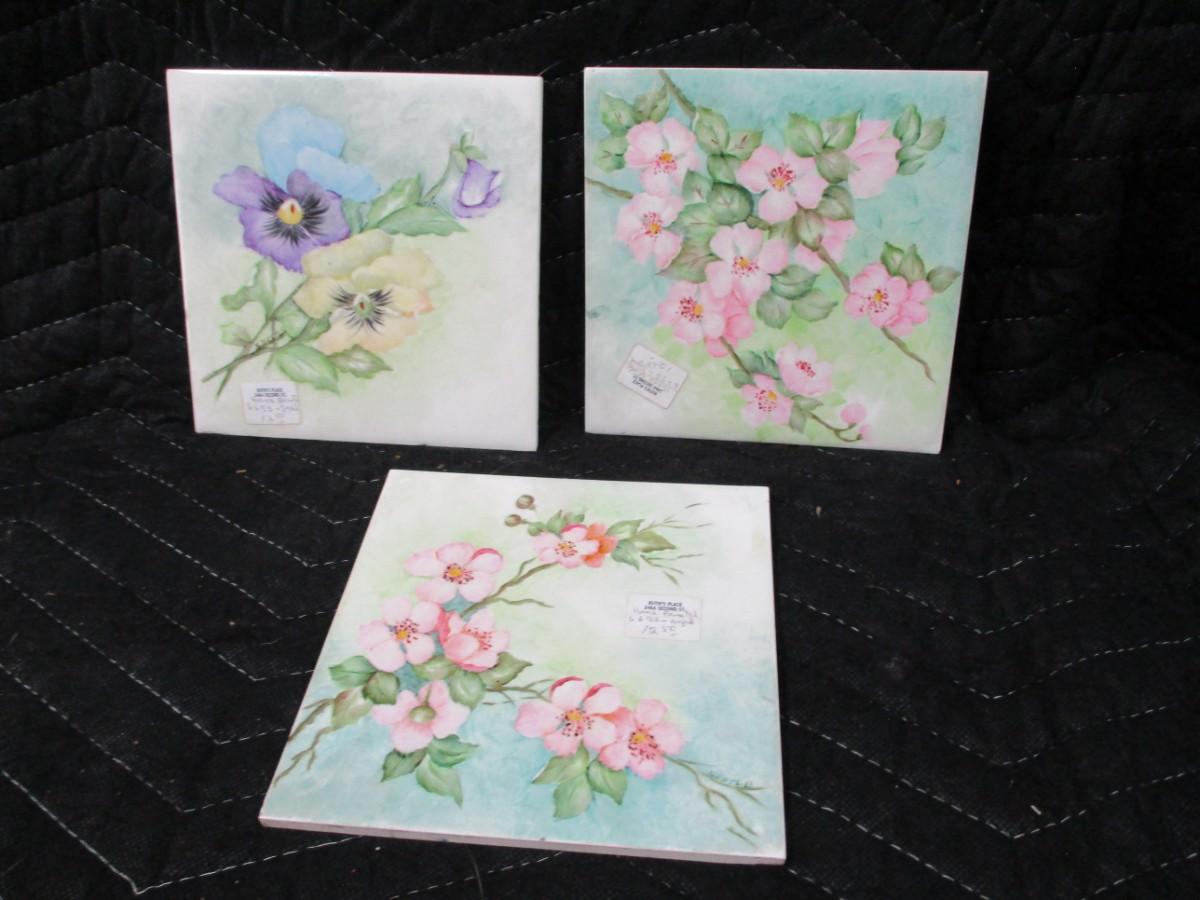 Lot 154 - Vintage Hand Painted Porcelain Floral Tiles