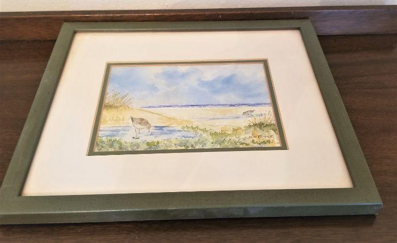 Sweet little watercolor that would be perfect for your beach house - signed M.S. Trask. Triple matted. Measures about 12" x 15".