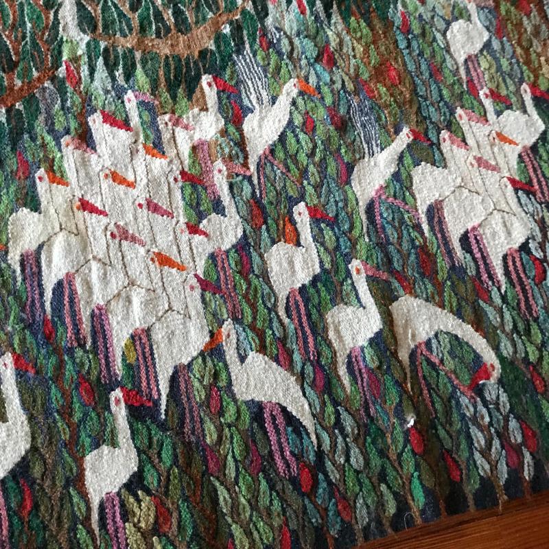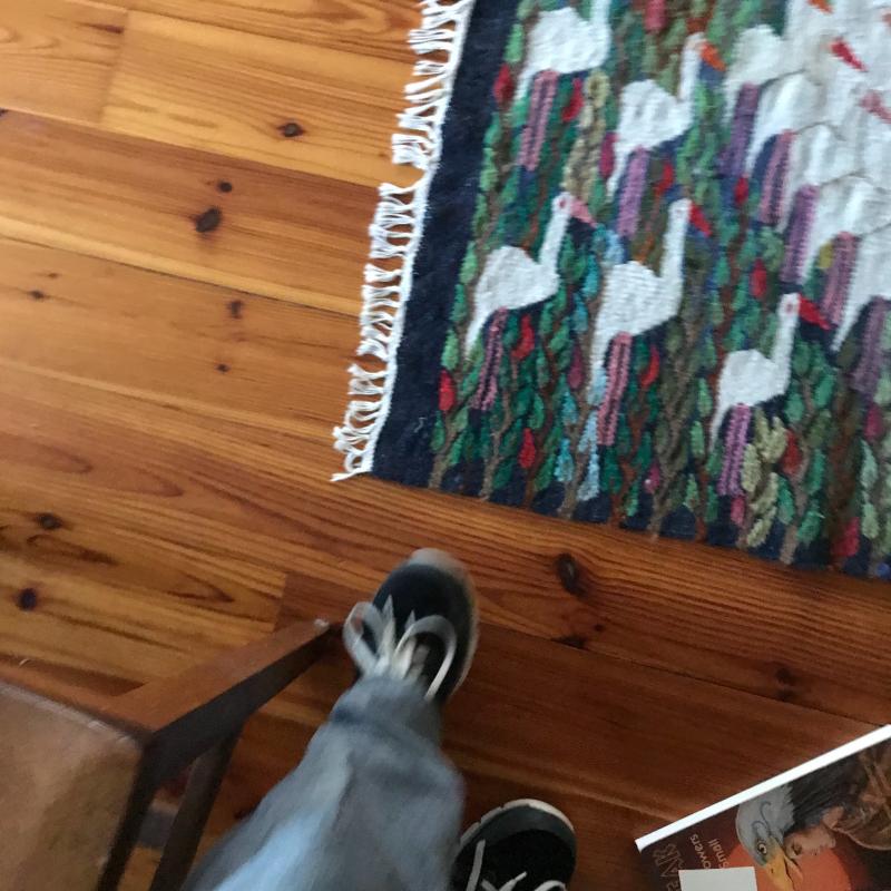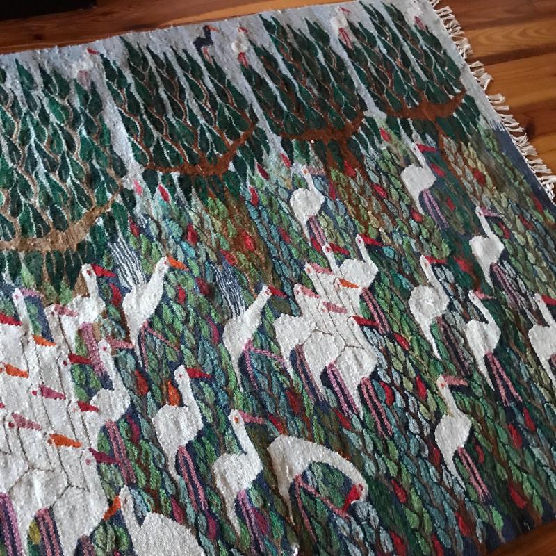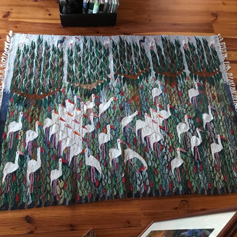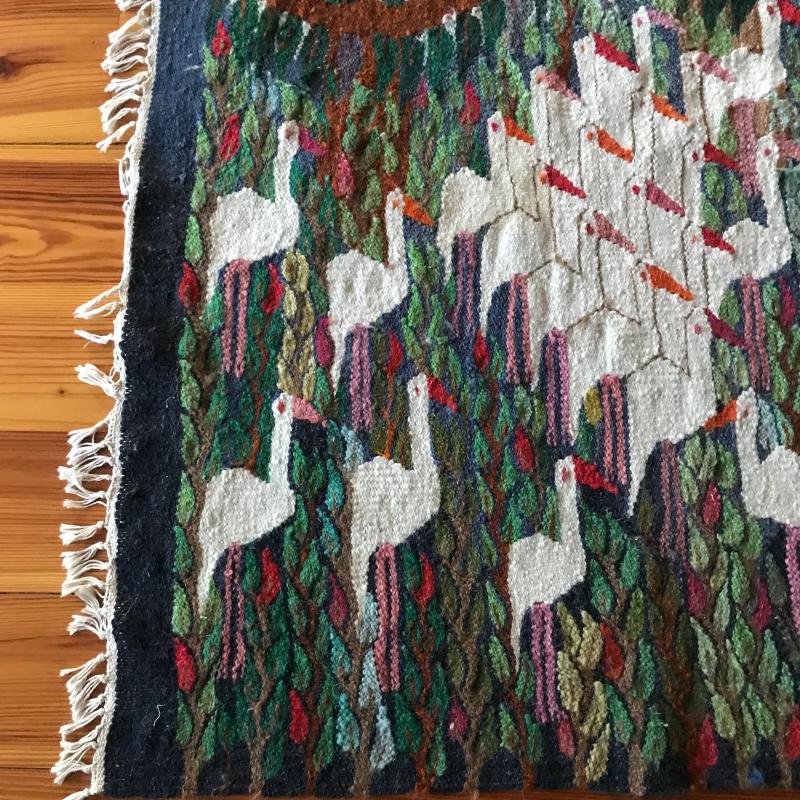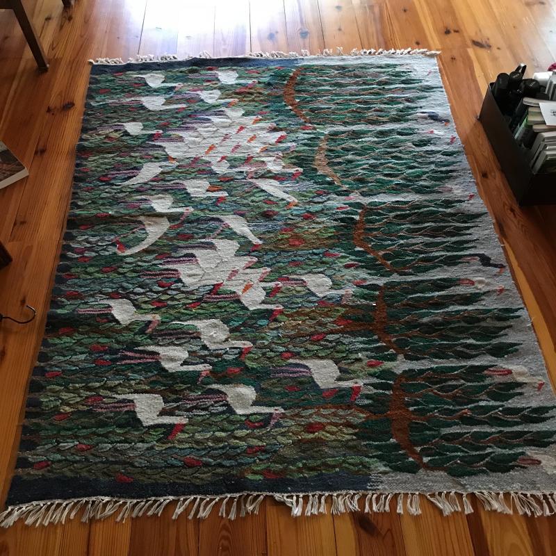 This unique wool rug is in good shape approx. 58” x 45”. Comes from house with cats. Shipping available or local pickup in Asheville, NC.