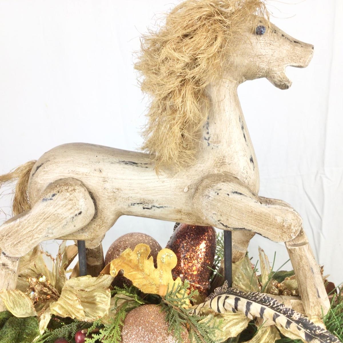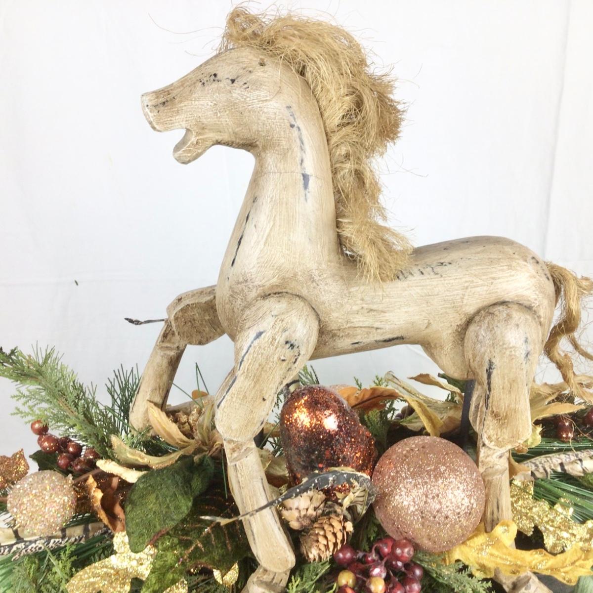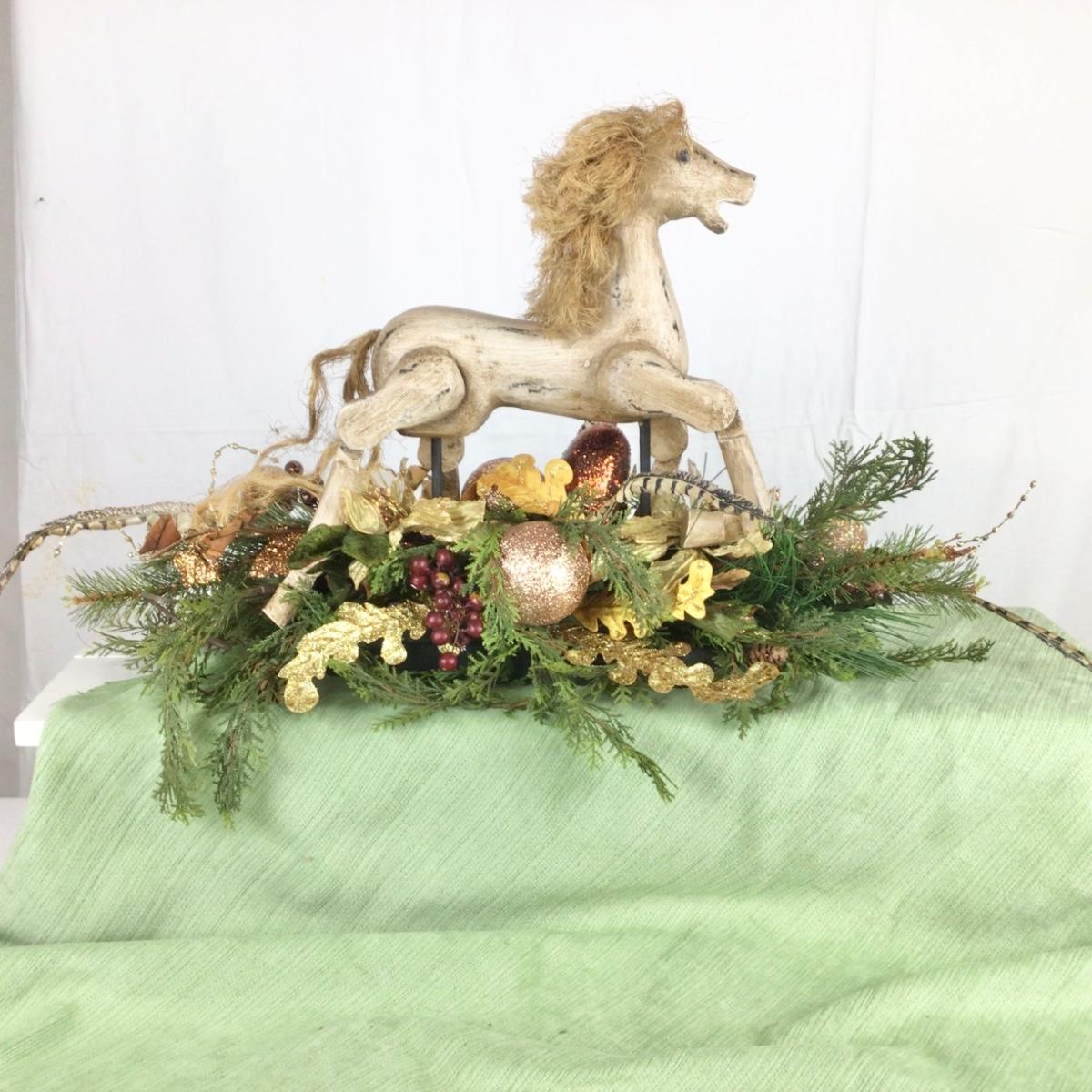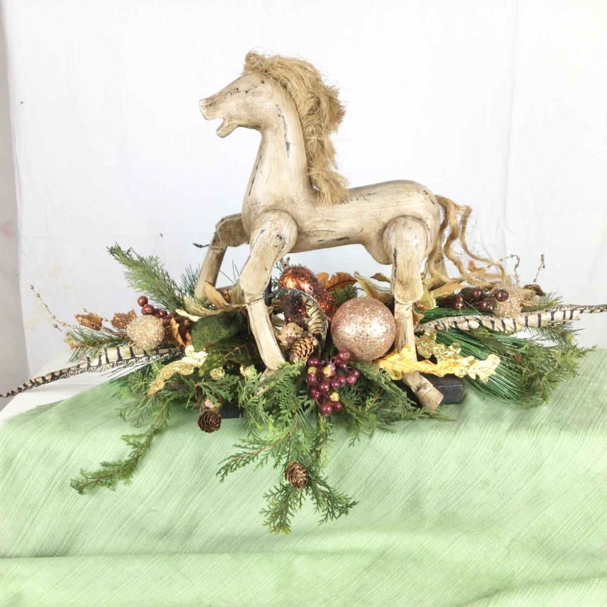 Lot. 1549. Christmas Horse Artificial Arrangement Centerpiece