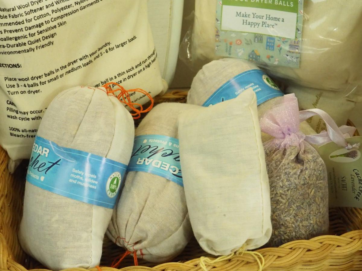 Lot 154A- Nellies natural dryer balls, Spray strach, potpourri, LL Bean organizer, baskets