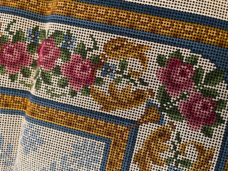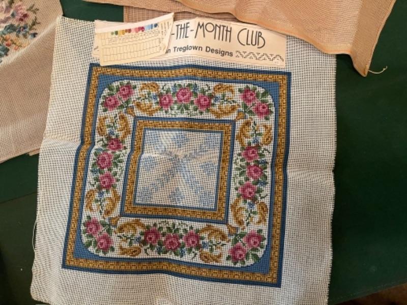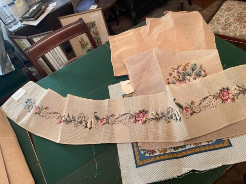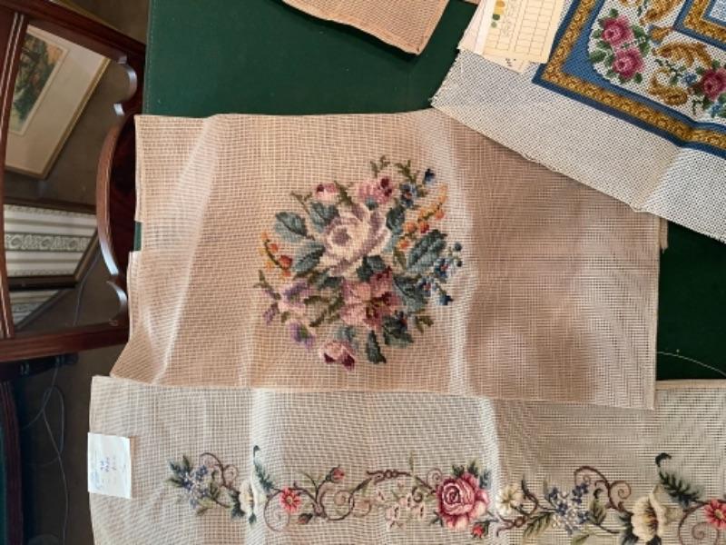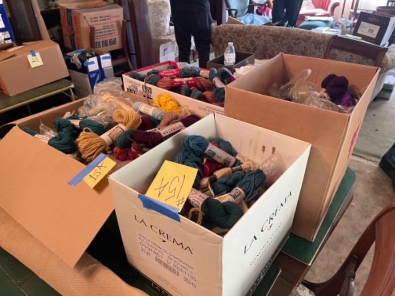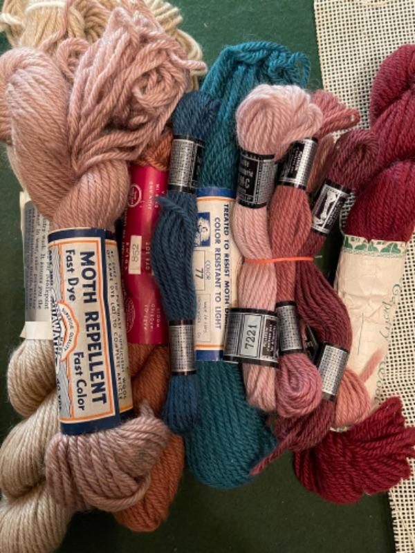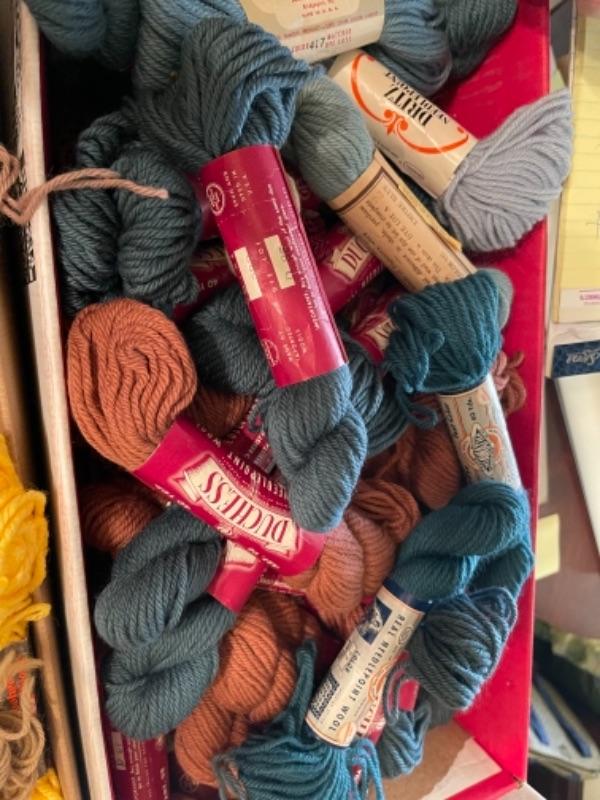 Lot 154DR. Large collection (hundreds of skeins) of needlepoint wool (Hiawatha, Bernat, Bucilla, Elsa Williams, Dritz, etc.) and unworked canvasses for completion--$250
