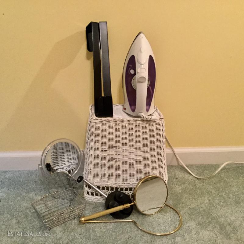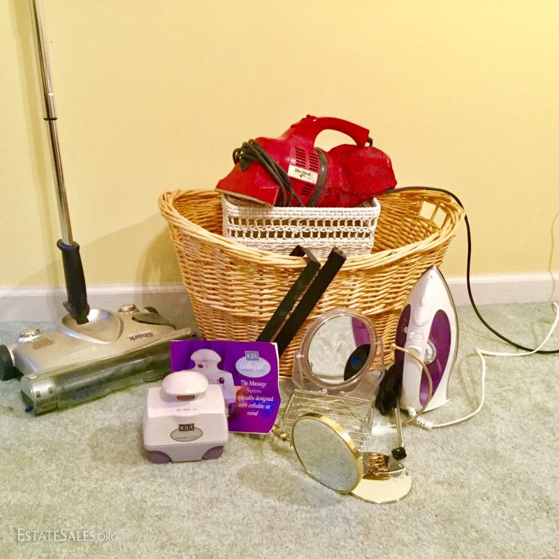 This lot includes a Dirt Devil vacuum model 193, a Shark Vacuum, laundry basket, a Hamilton Beach Iron, vanity mirrors and a massager. See photos for details. No Shipping. Only local pick up in Flat Rock, NC.