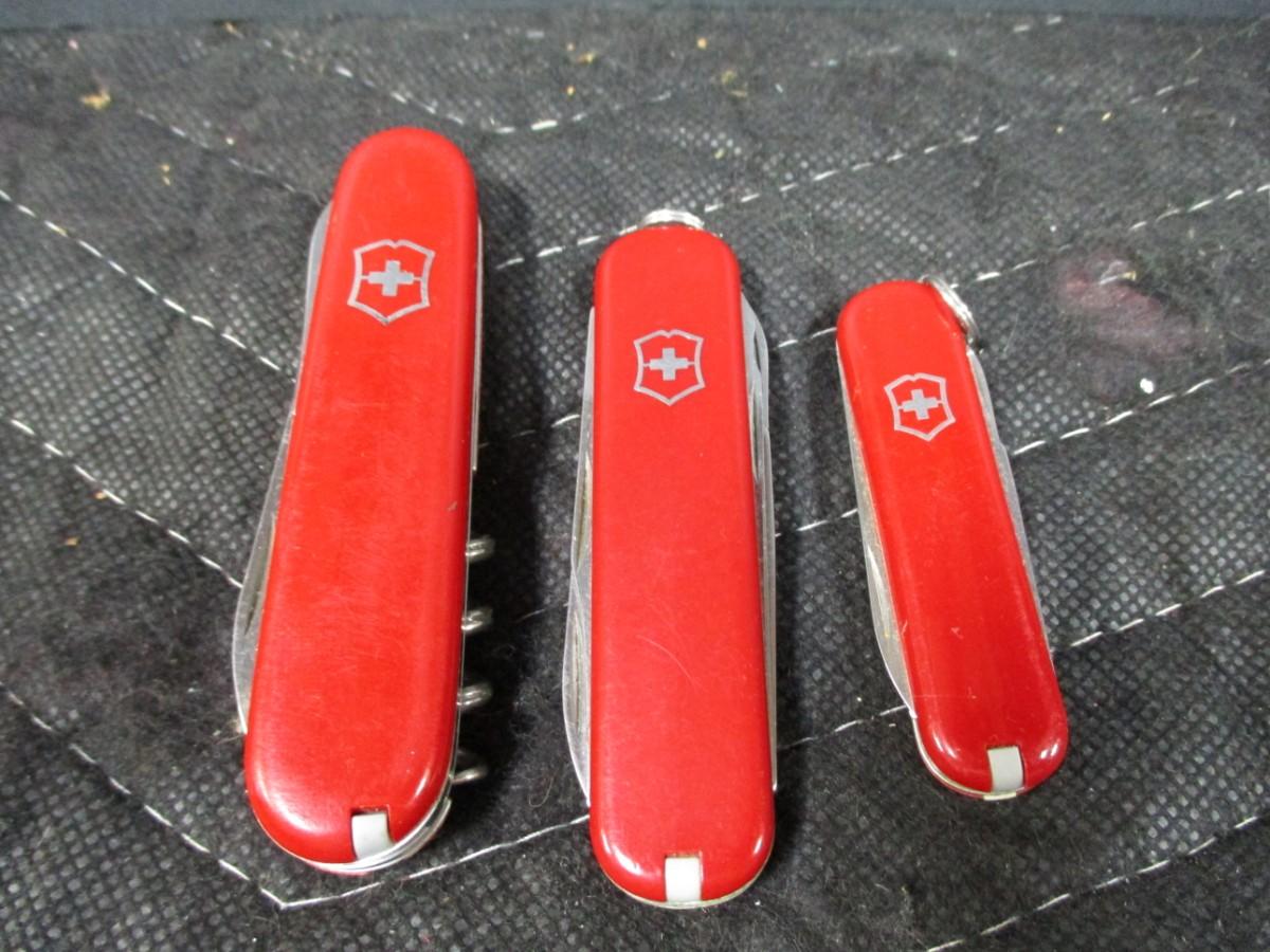 Lot 155 - 3 Different Sizes Of Swiss Army Pocket Knives