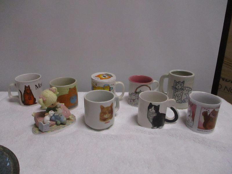 Lot 155 - Cat Coffee & Tea Mugs & 1 Precious Moments Figurine