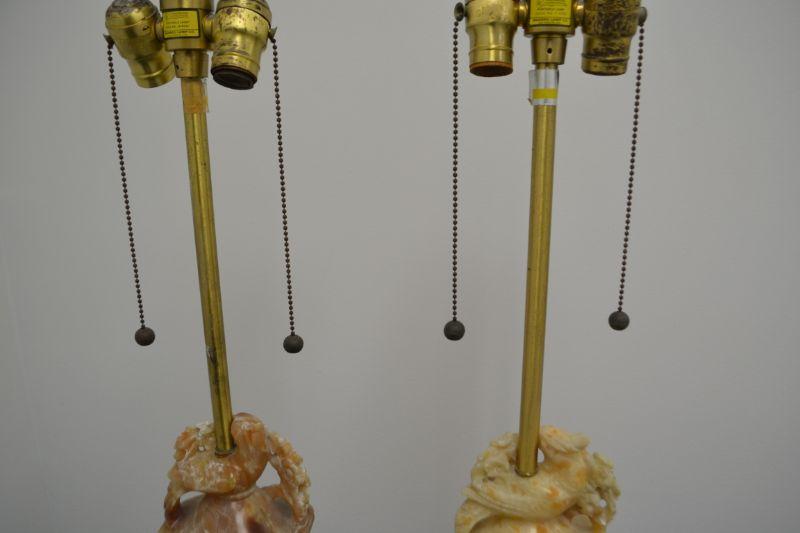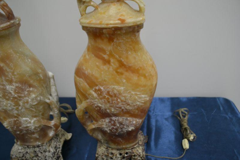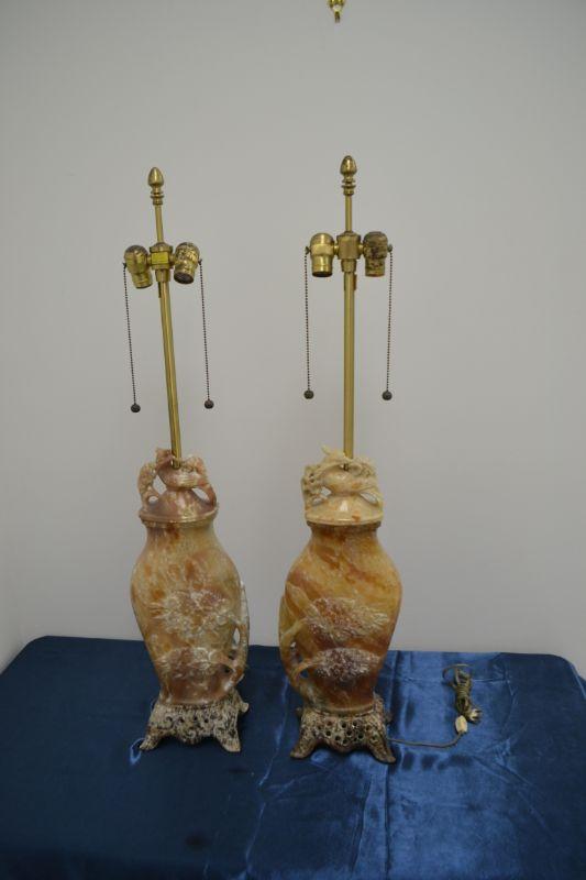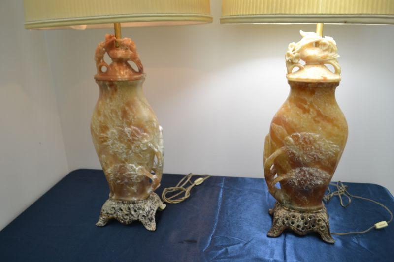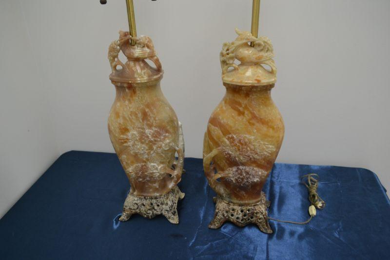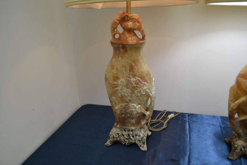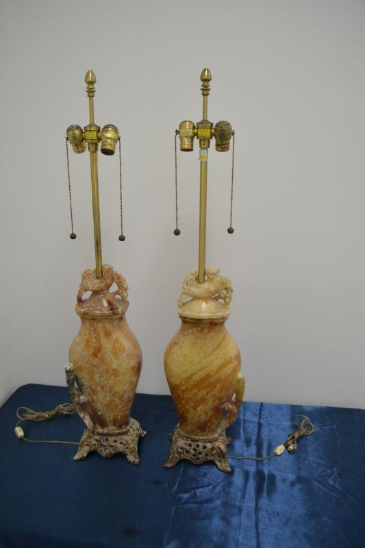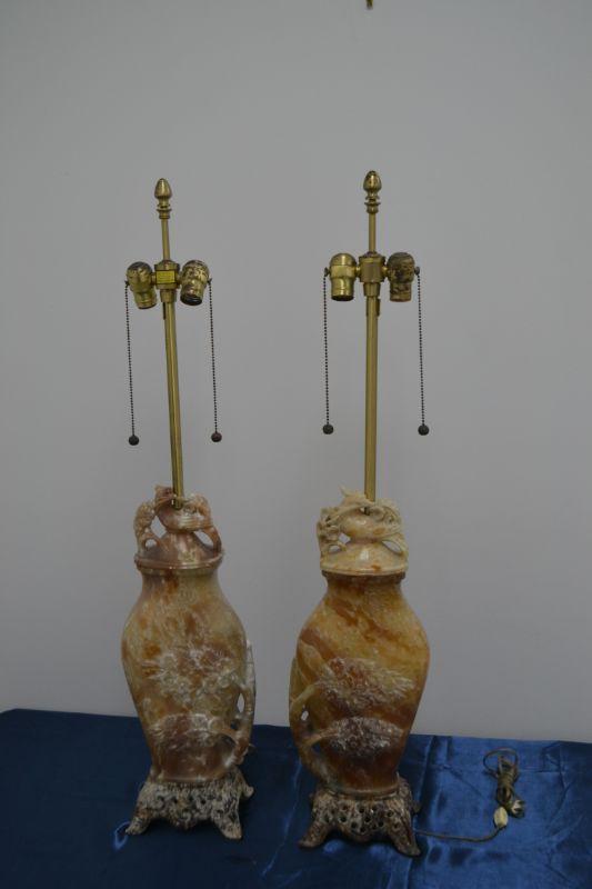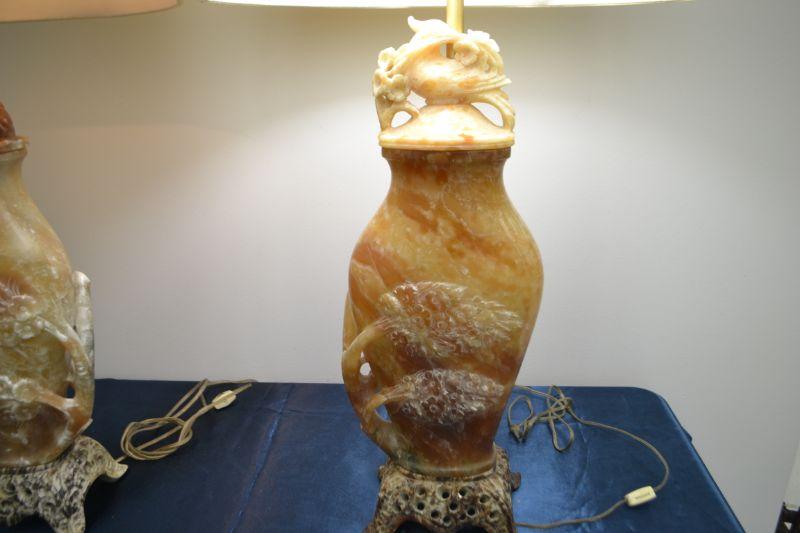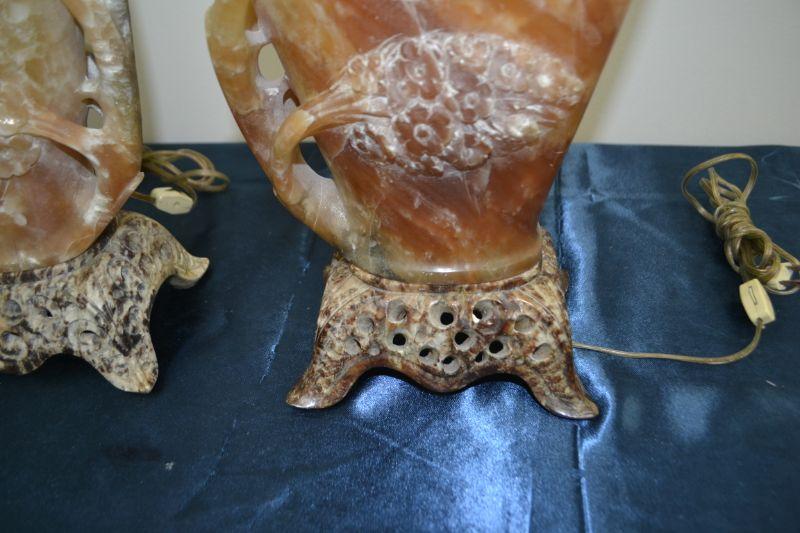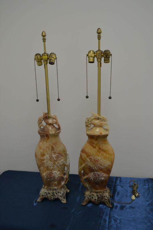 LOT 155  PAIR OF VINTAGE MARBRO ASIAN CARVED SOAPSTONE TABLE LAMPS