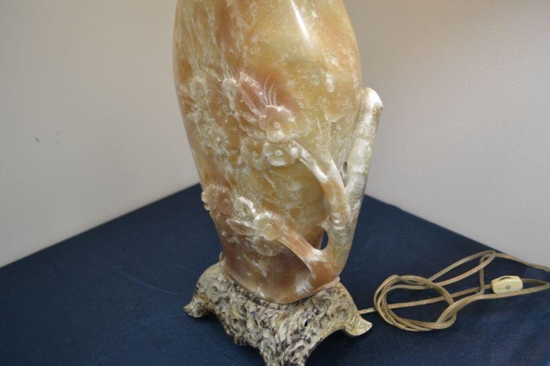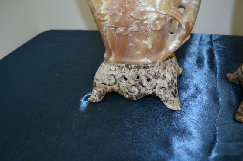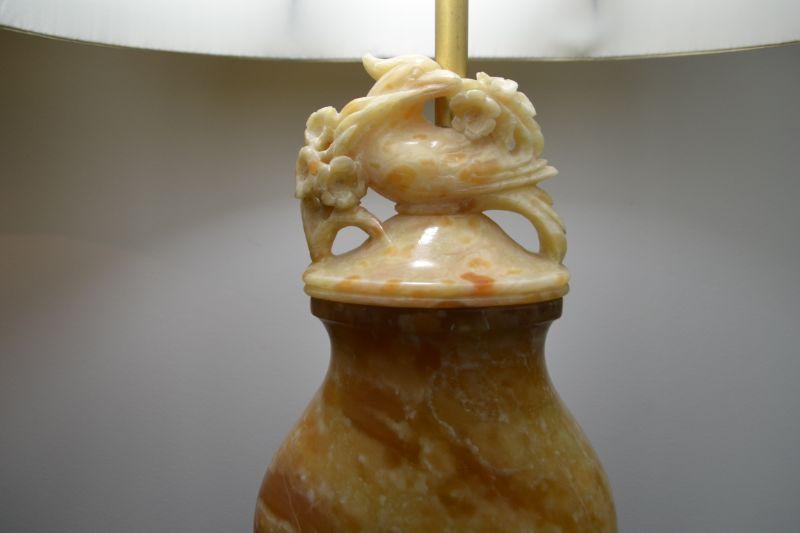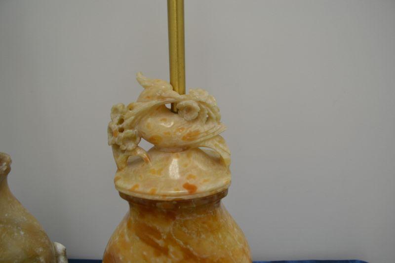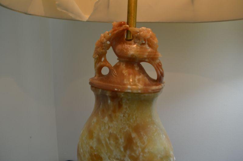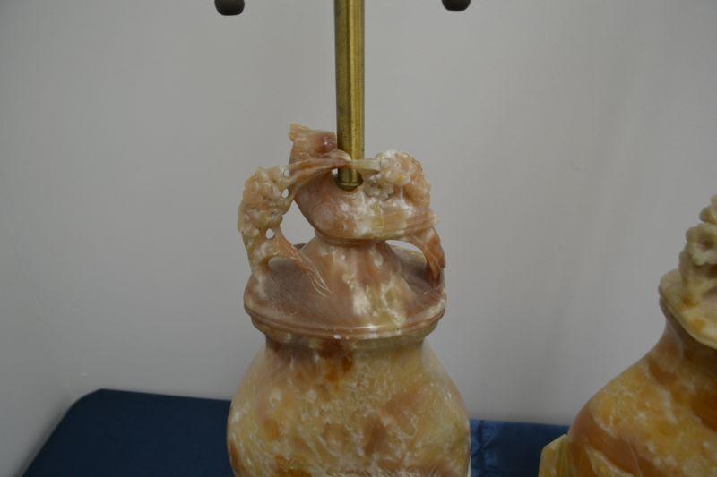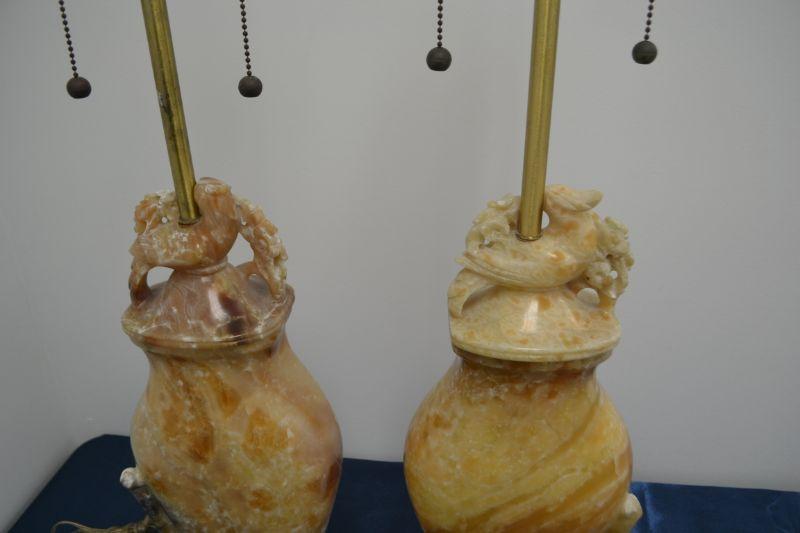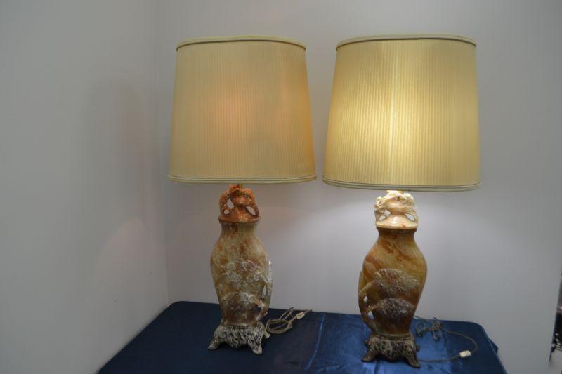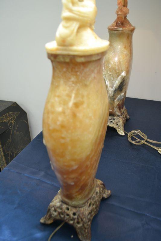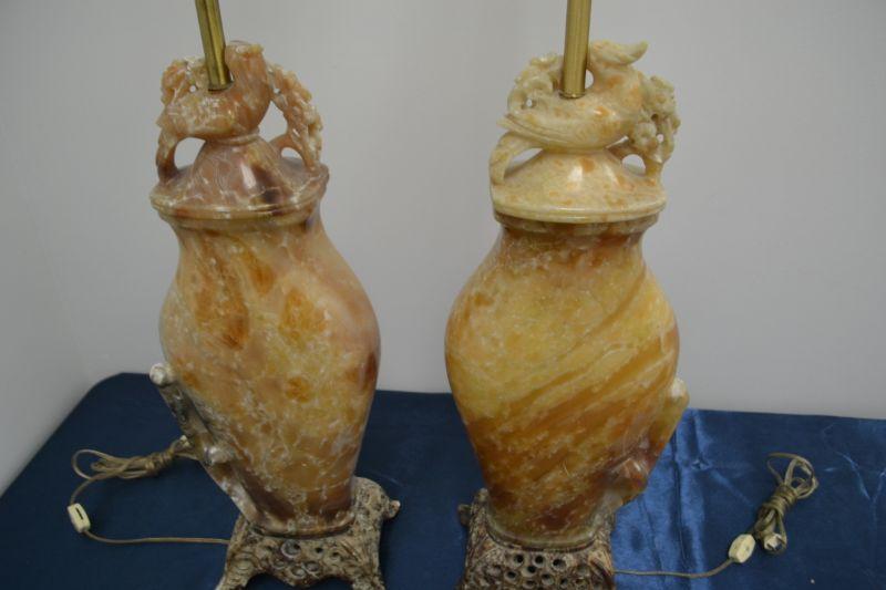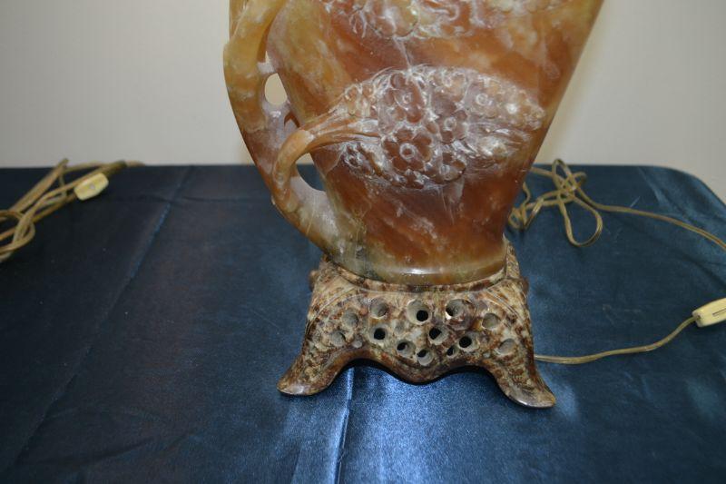 LOT 155  PAIR OF VINTAGE MARBRO ASIAN CARVED SOAPSTONE TABLE LAMPS