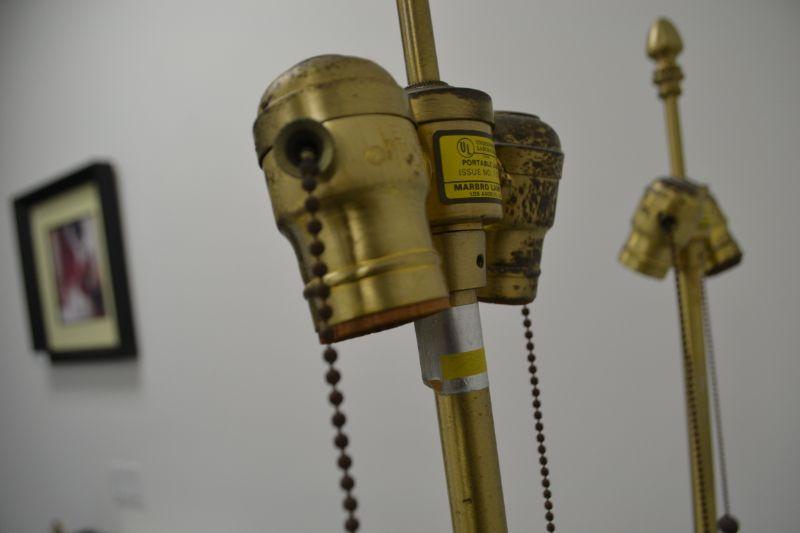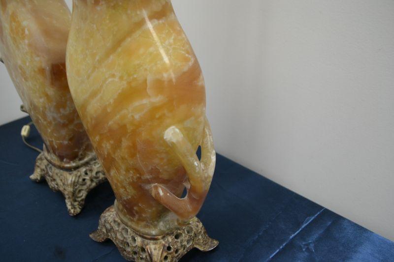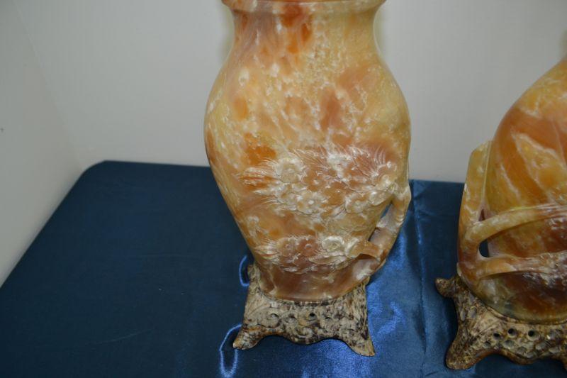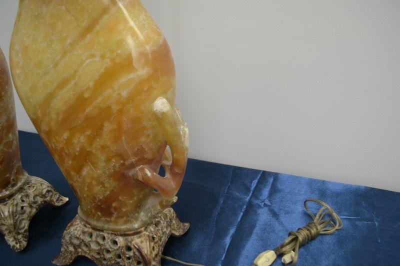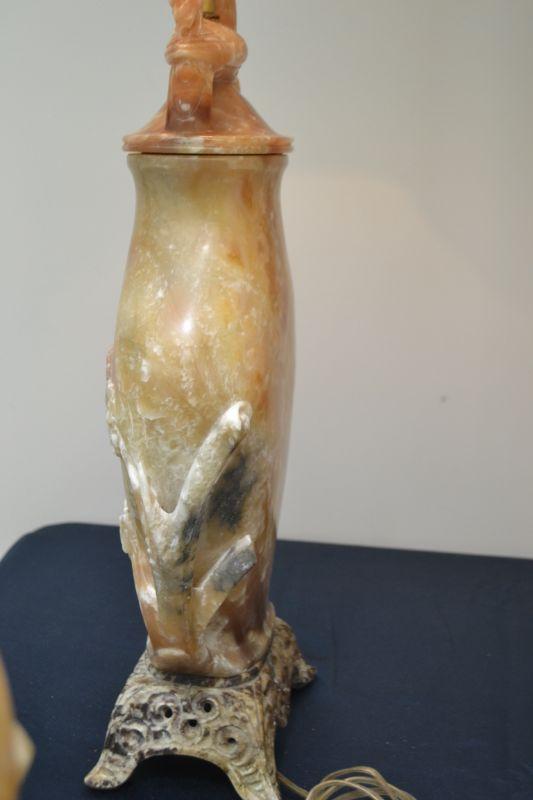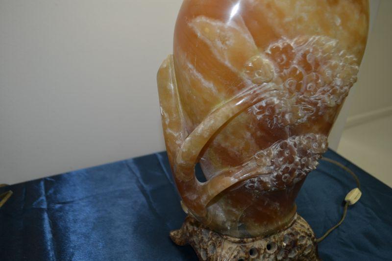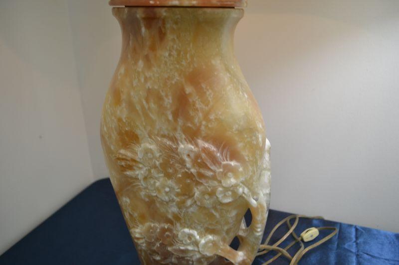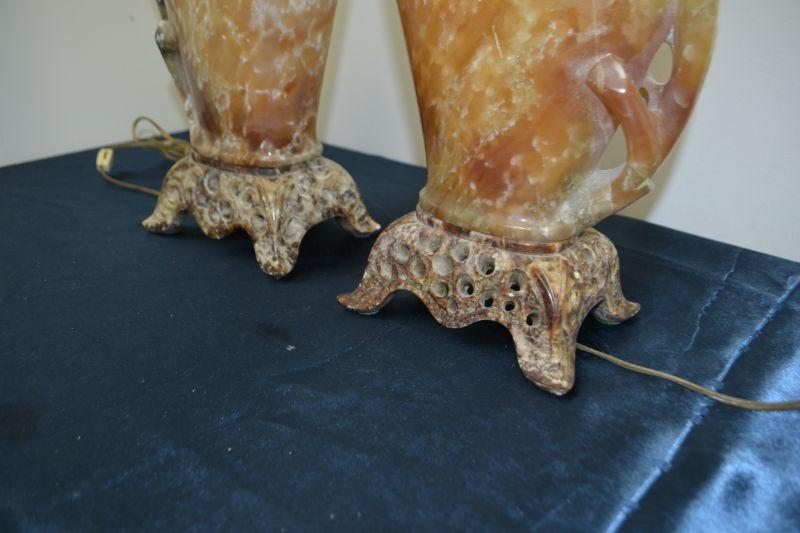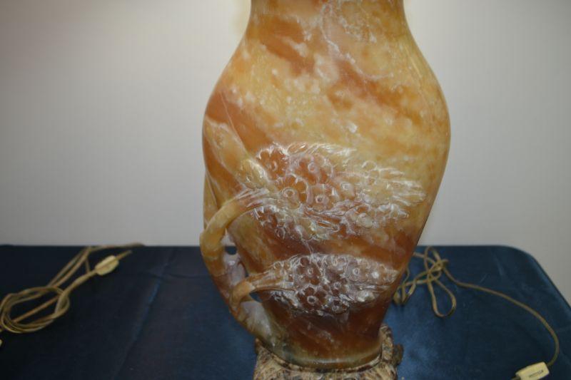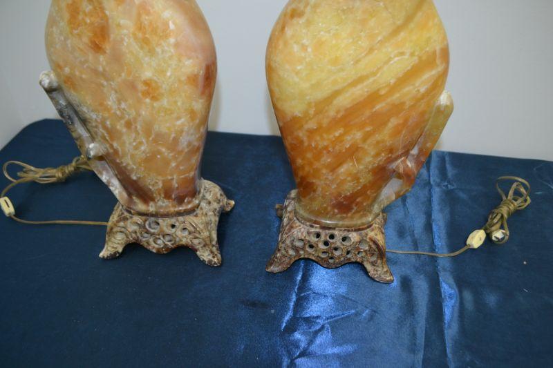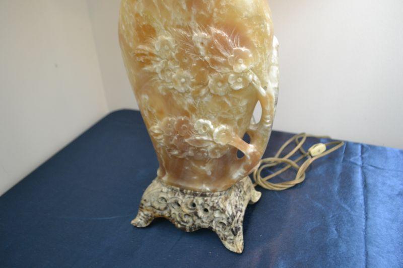 LOT 155  PAIR OF VINTAGE MARBRO ASIAN CARVED SOAPSTONE TABLE LAMPS