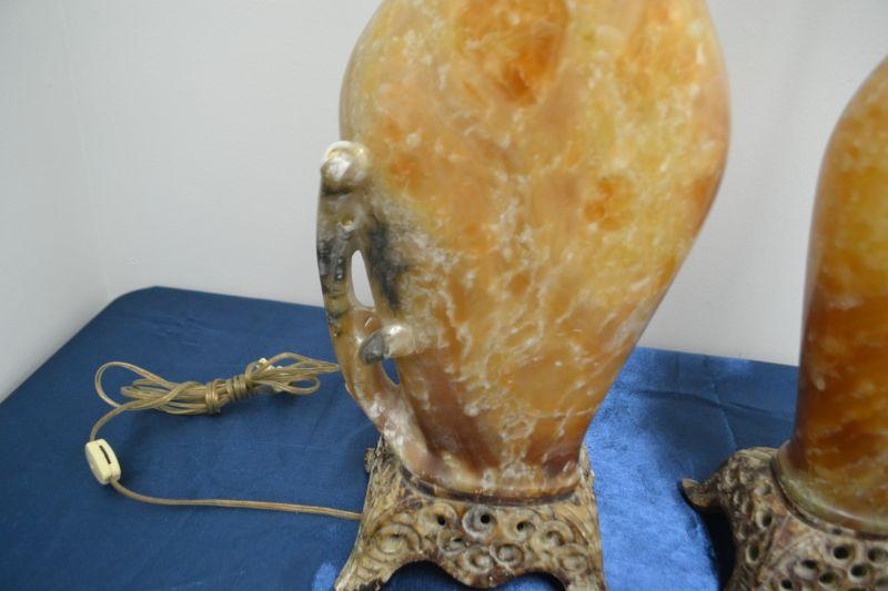 LOT 155 PAIR OF VINTAGE MARBRO ASIAN CARVED SOAPSTONE TABLE LAMPS