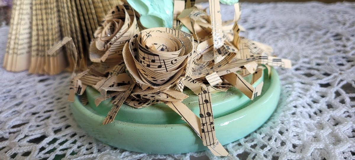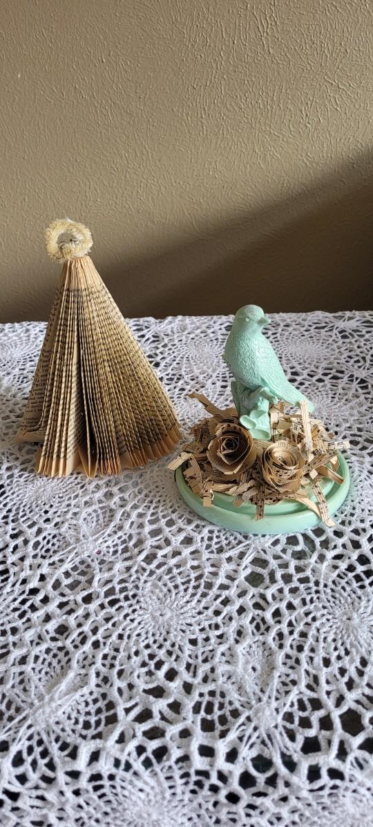 Nice combo that features a bird atop a paper nest and a Paper Angel.