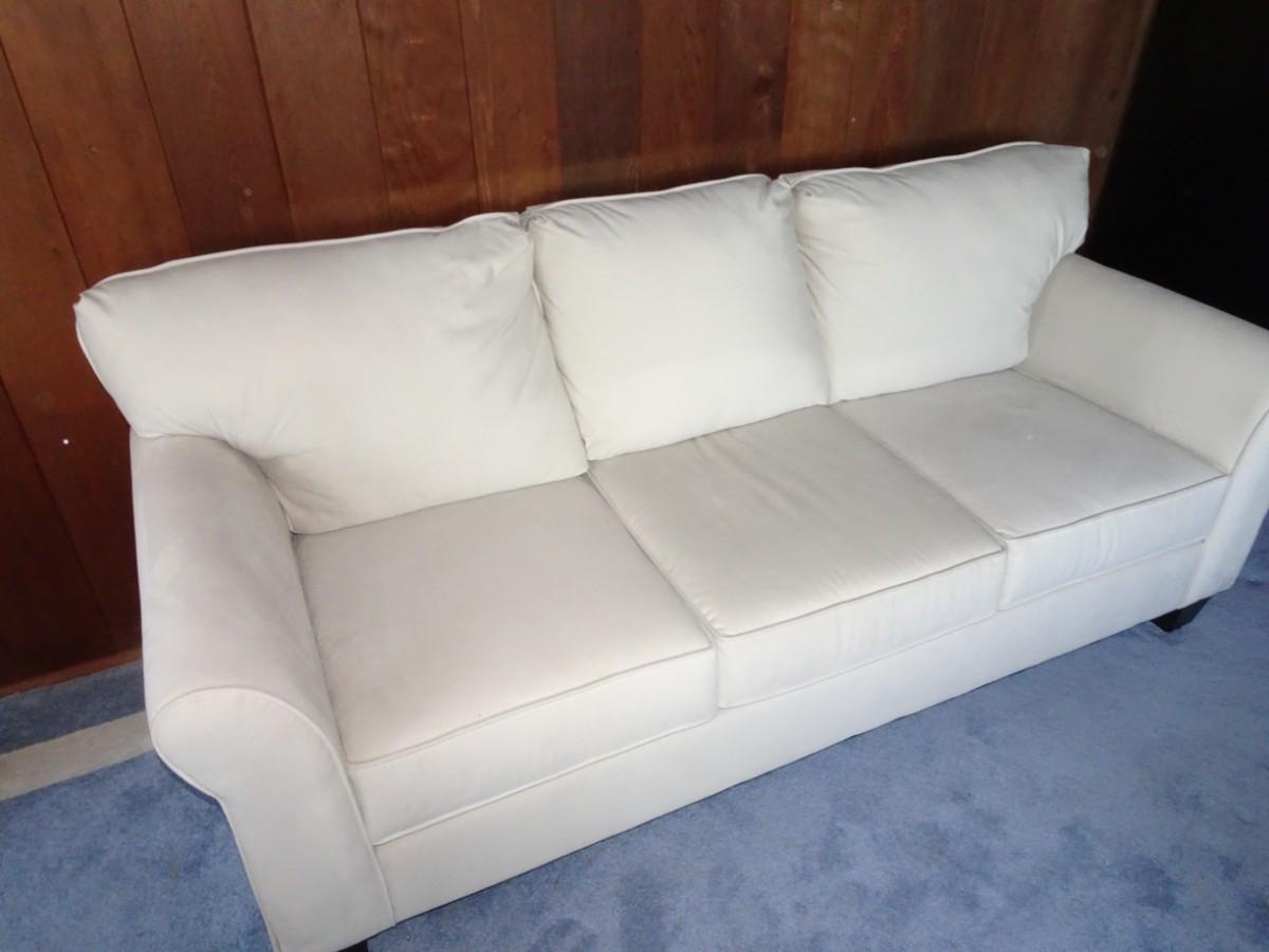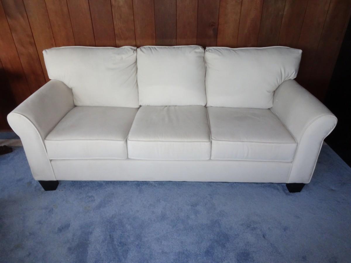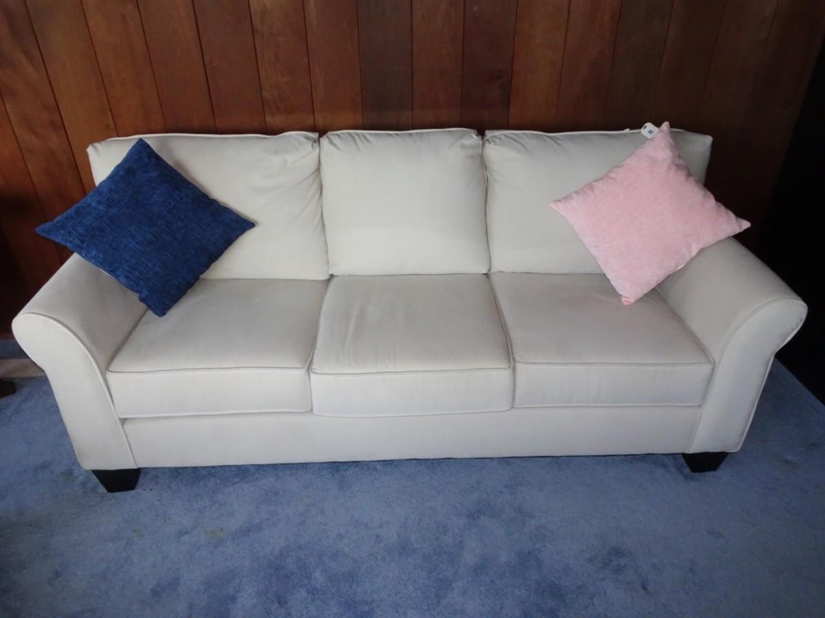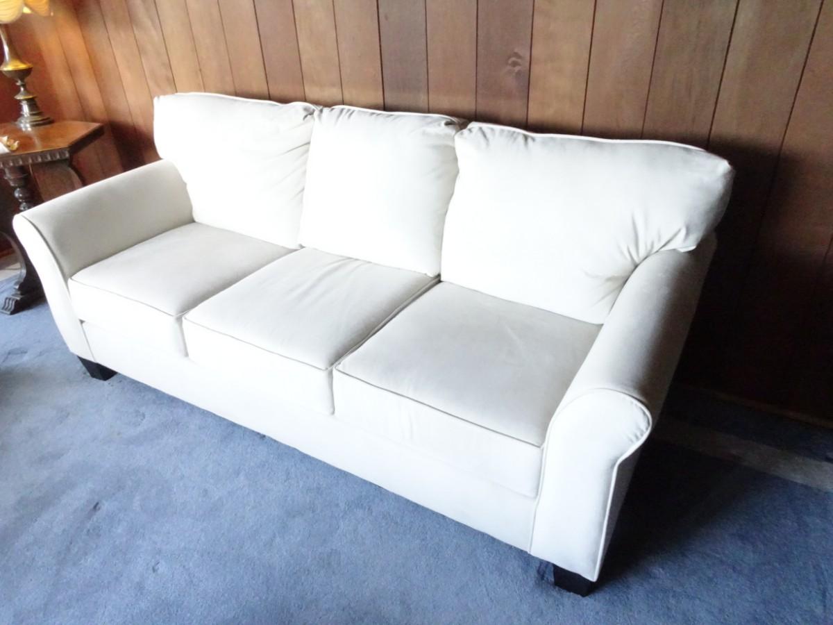 CREME COLOR MICROFIBER COUCH. 85" LONG