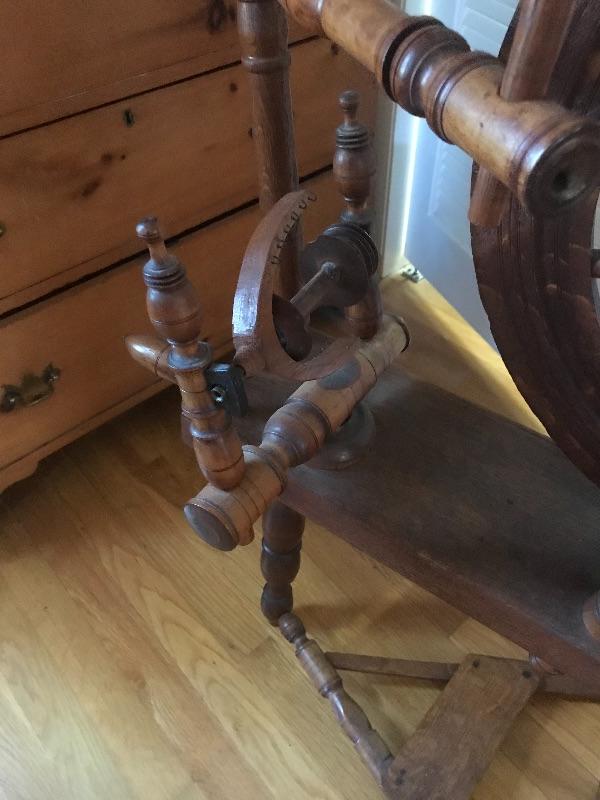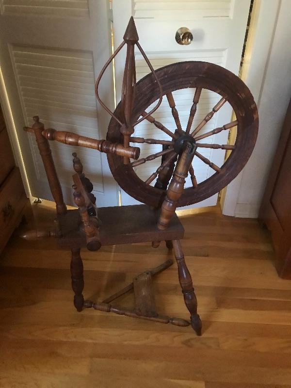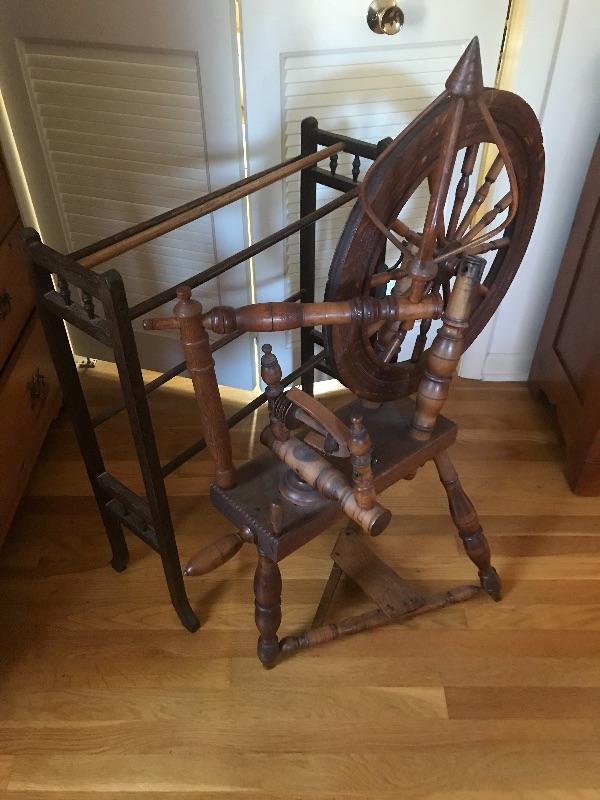 Lot # 155 Antique Spinning Wheel and quilt rack
