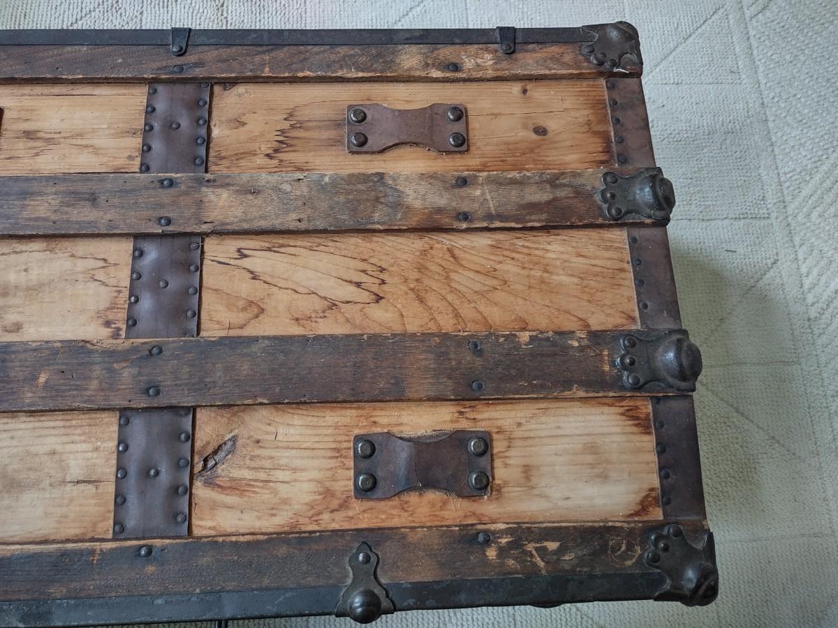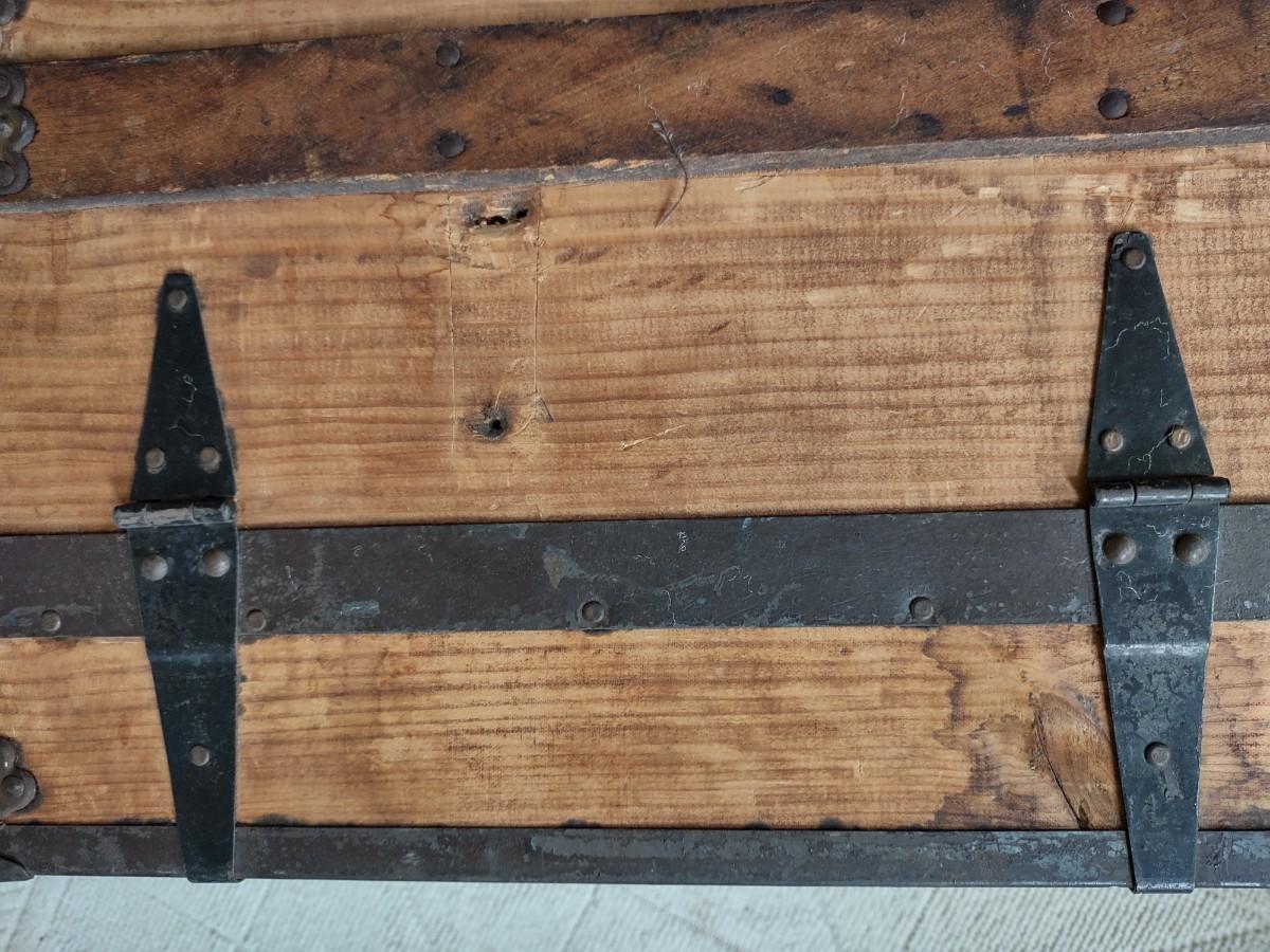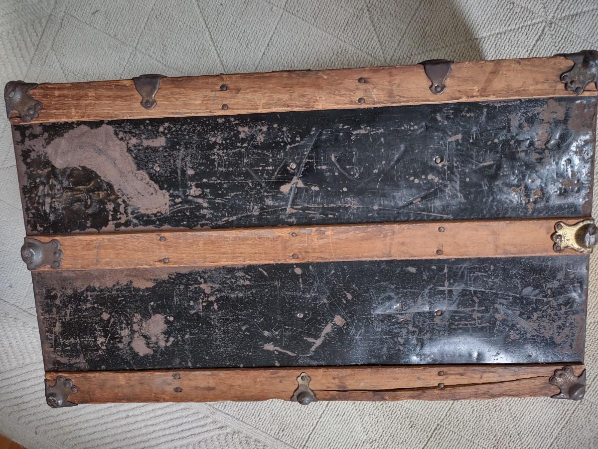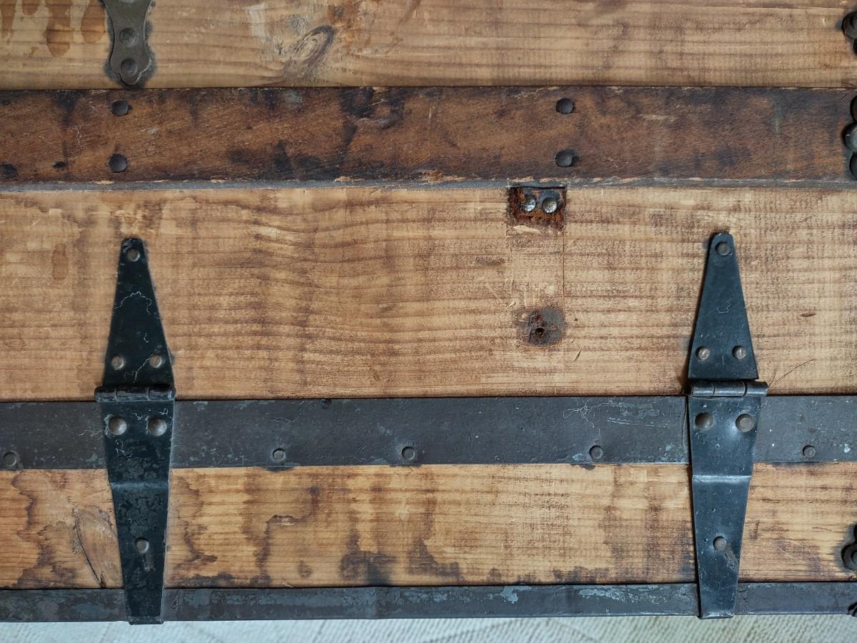 31x18x13 inches tall. Gorgeous antique trunk. The wood on this is incredible! The client collected antique trunks and repaired them or accented them for home decor with function! No handles. Please see all pictures for content of the lot, condition of the lot, and measurements if taken. Pictures are the best representation of the items listed and items are untested unless indicated in description. Thank you for looking and have fun bidding!