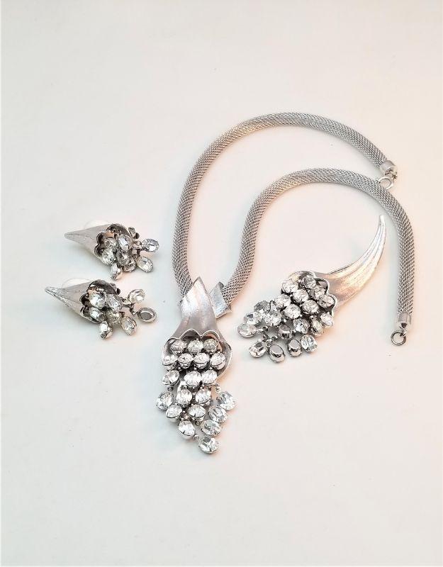 Lot #155 Awesome Vintage Rhinestone Parure - Necklace, Brooch, Earrings