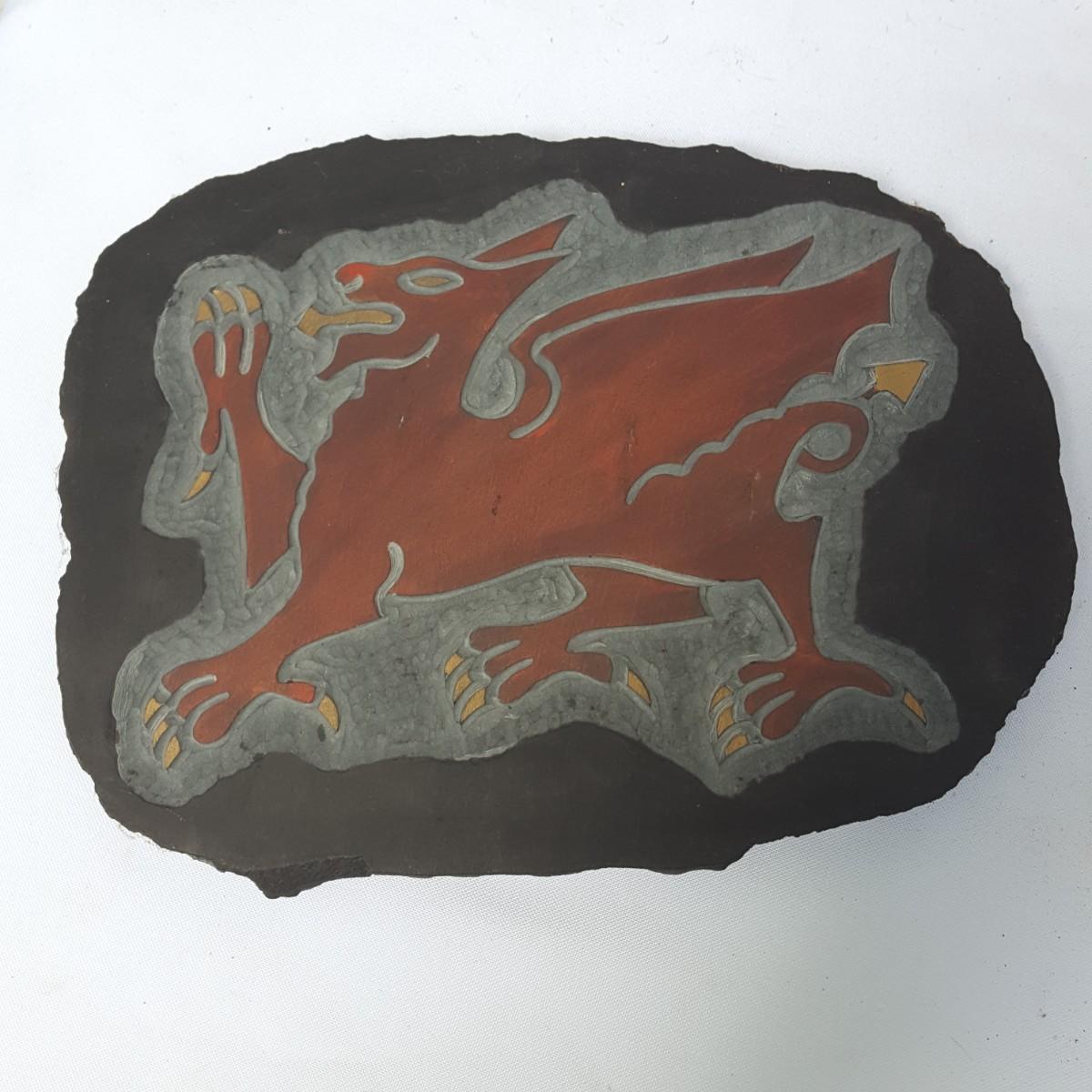 If you have Celtic ancestry, this lot would be a great addition to your family or as a gift! This lot contains 3 Celtic books with beautiful illustrations! See pictures for details. There is also a dragon that has been painted on a piece of slate rock (9x7 inches), perfect for any wall. To add to the Celtic mystic is a hand drawn unicorn matted on a red background. Added to this lot is a metal Gaelic saying that means, "Welcome" or "A thousand welcomes" how wonderful is that! We can't have this lot without a metal chalice measuring 7x3 inches and a crystal and a small jar with a scooping dragon lid! Shipping available
