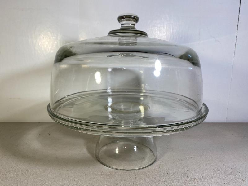 Lot# 155 Covered Cake Plate Pedestal Heavy Glass