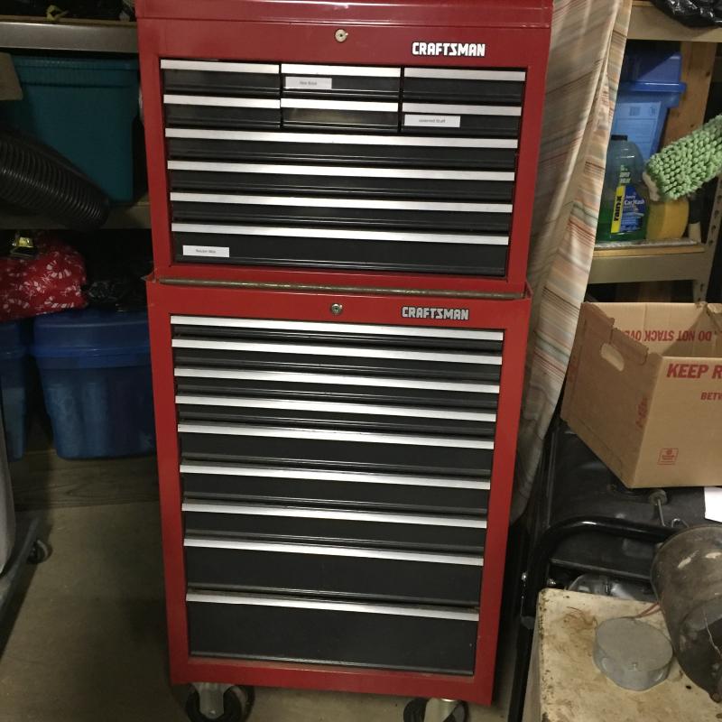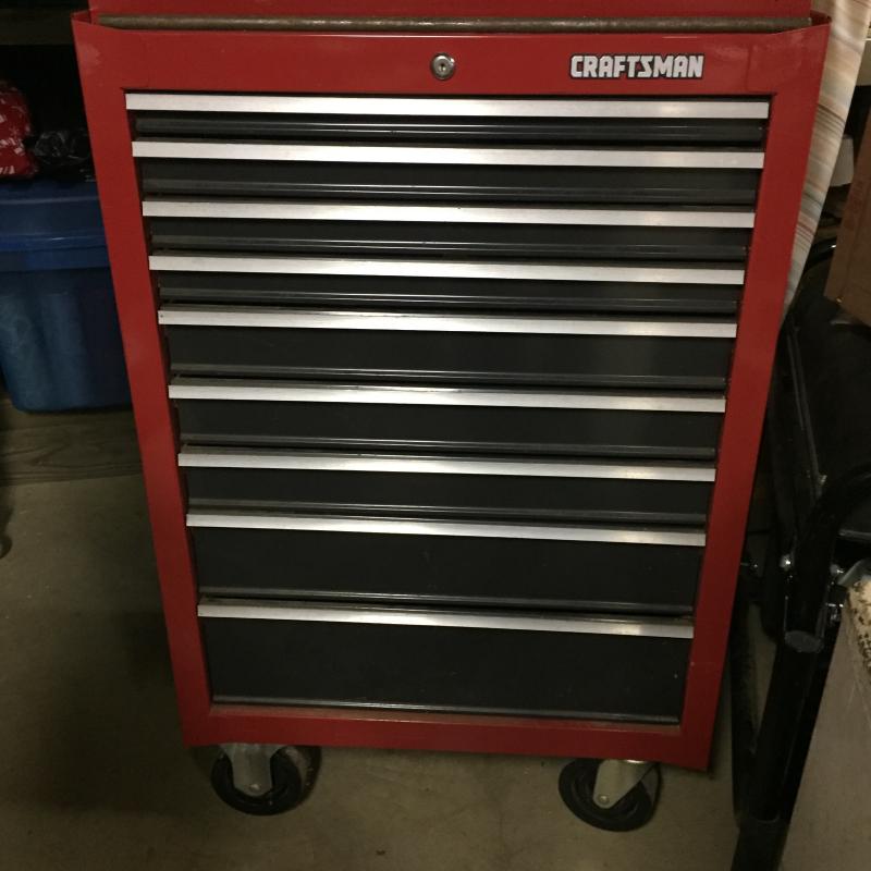 Craftsman Toolboxes with Contents Top Has 10 Drawers Measures 26” x 19” x 16”.