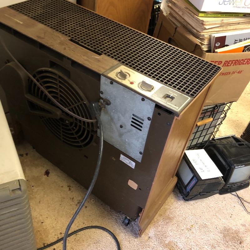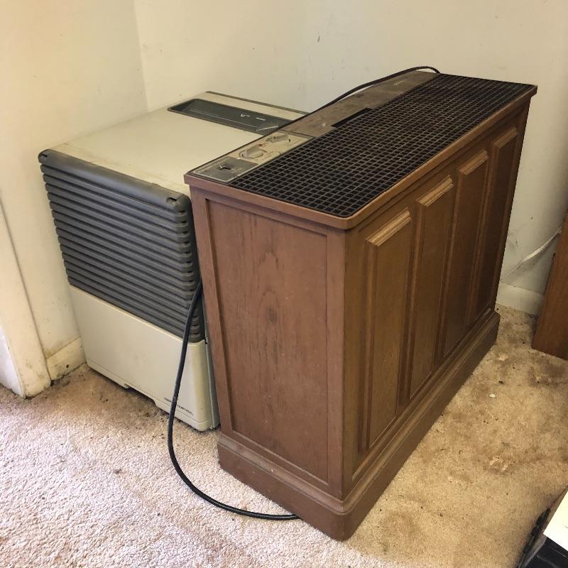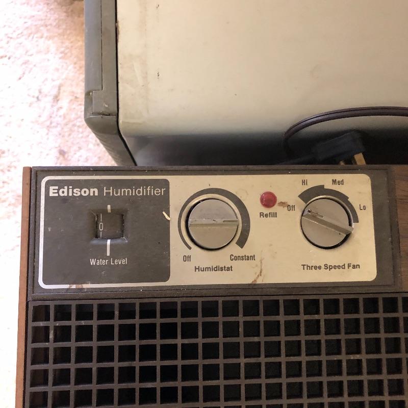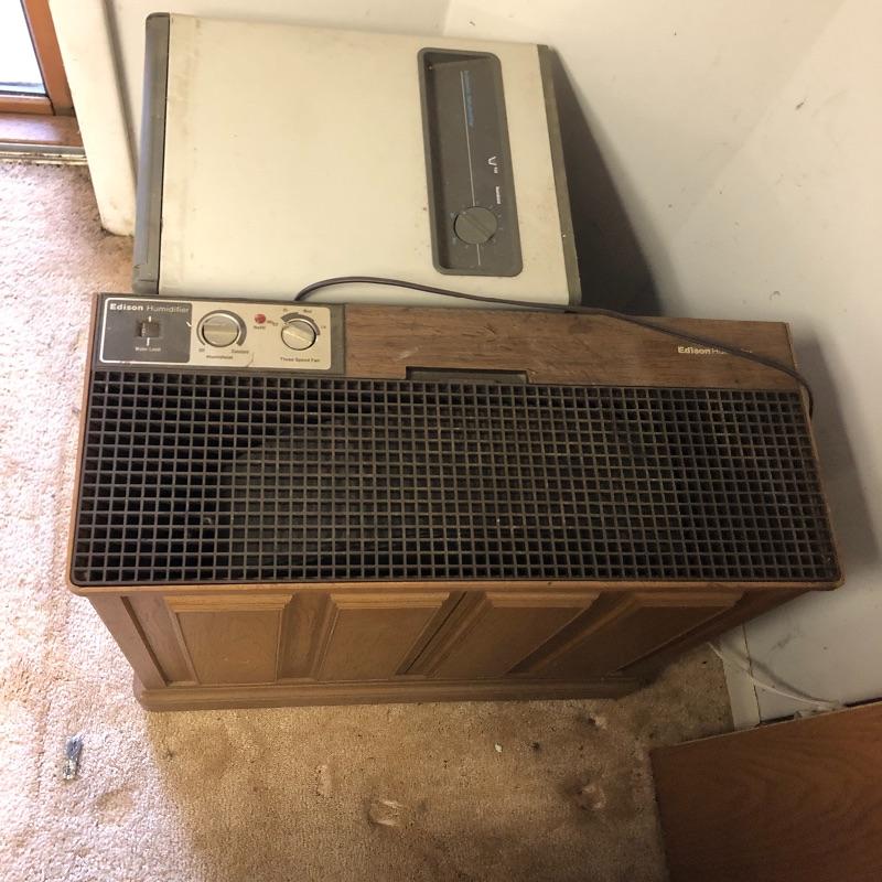 Whether your house is too wet or dry this lot has the answer. Includes Emerson Quiet Kool Dehumidifier, a vintage yellow Sears fan and Edison humidifier. All units powered on when tested.