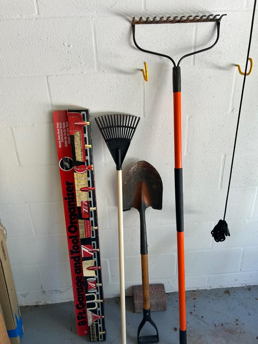 Lot 155. Garage Tool Organizer and Lawn Implements