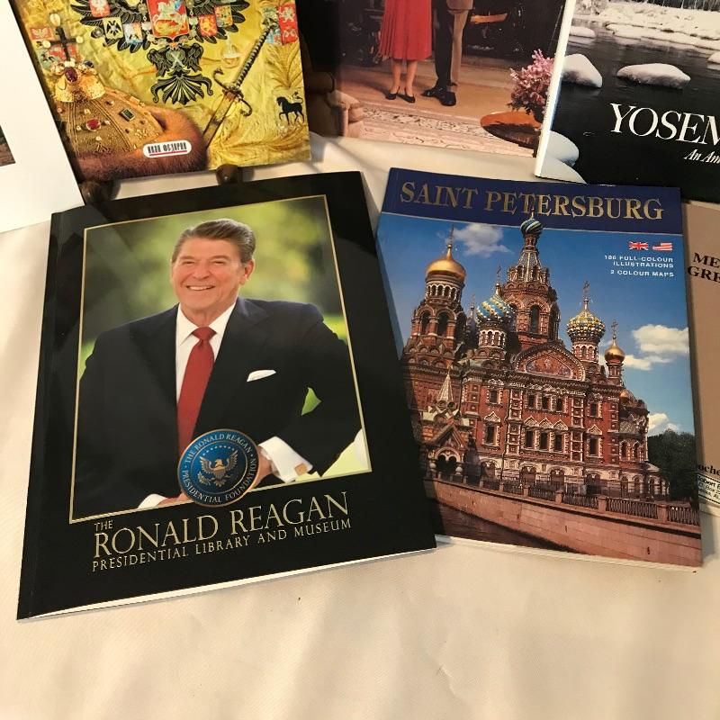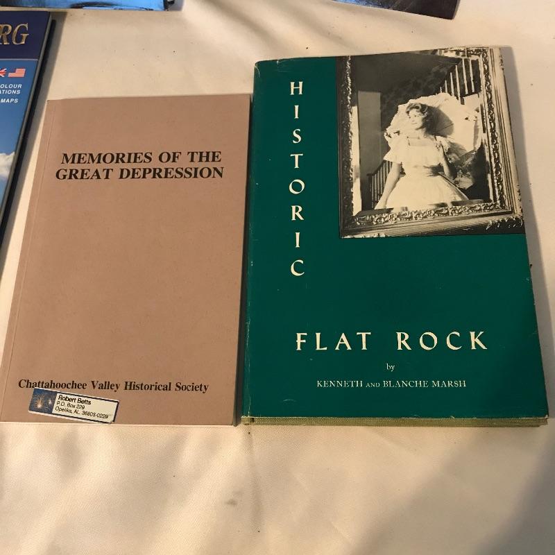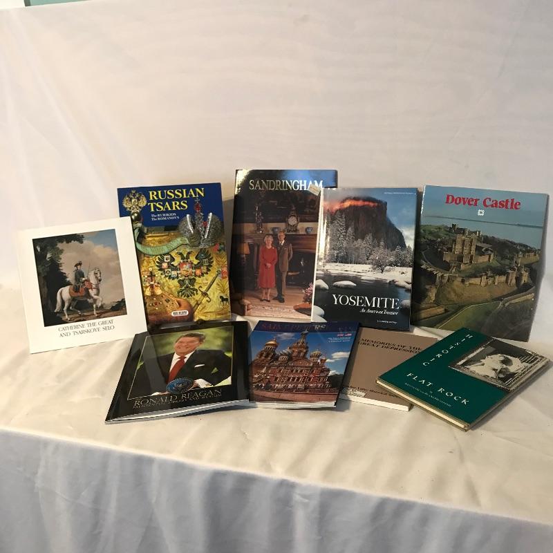 Nice collection for your coffee table! Lot includes a wide variety of books including titles like Memories of the Great Depression and Russian Tsars. The local hardback book titled Historic Flat Rock is signed by author and photographer. The National Geographic Society Yosemite An American Treasure and Historic Flat Rock are both hard cover, while the others are paperback or tourism guides. See photos. Shipping available.