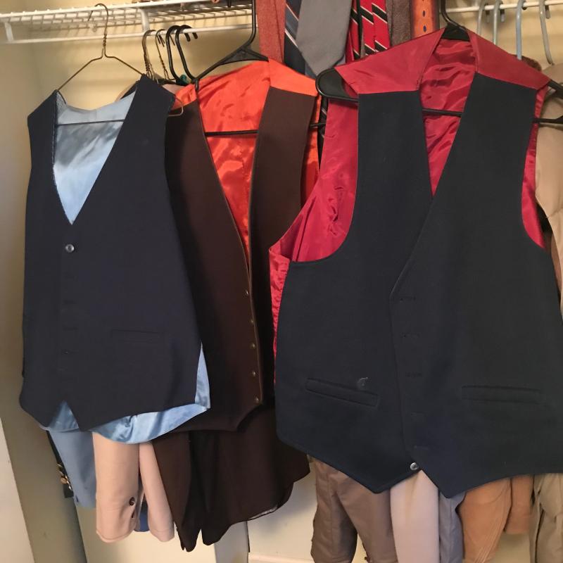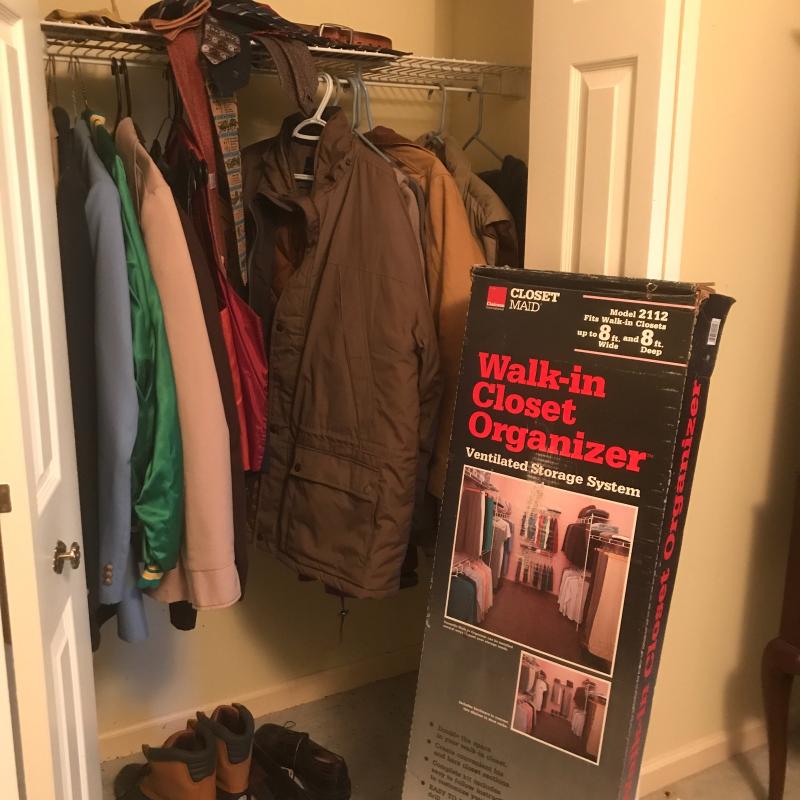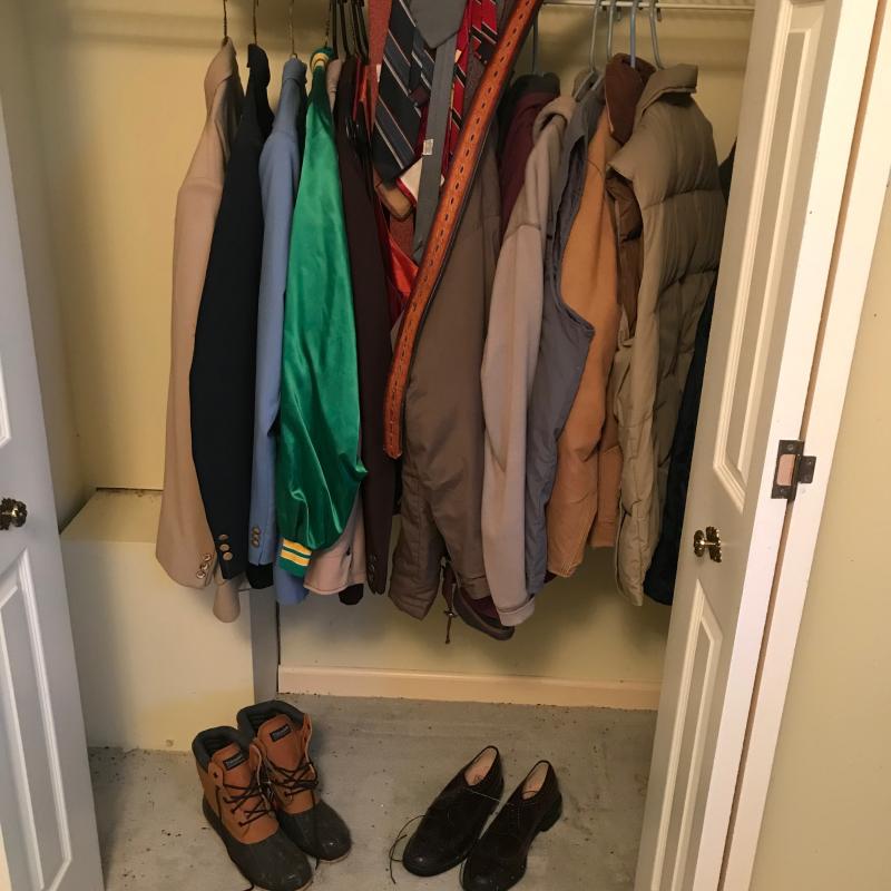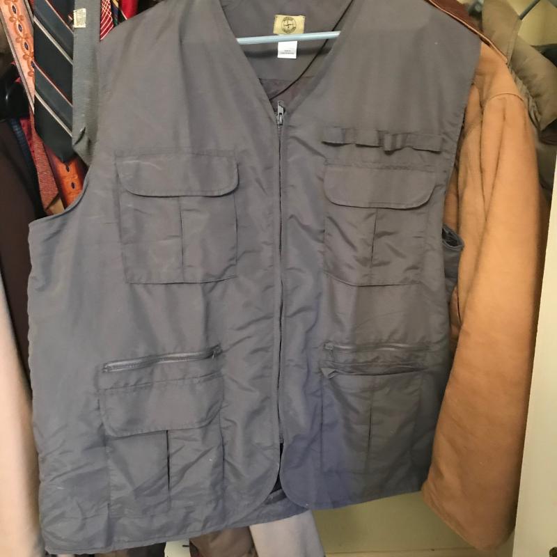 XL jackets, vests and ties as well as size 13 shoes. Thermal Thinsulate Boots and Wing tip shoes are un-worn but need to be cleaned. Lot also includes a closet organizer that is new in box. No shipping. Local pick up only.