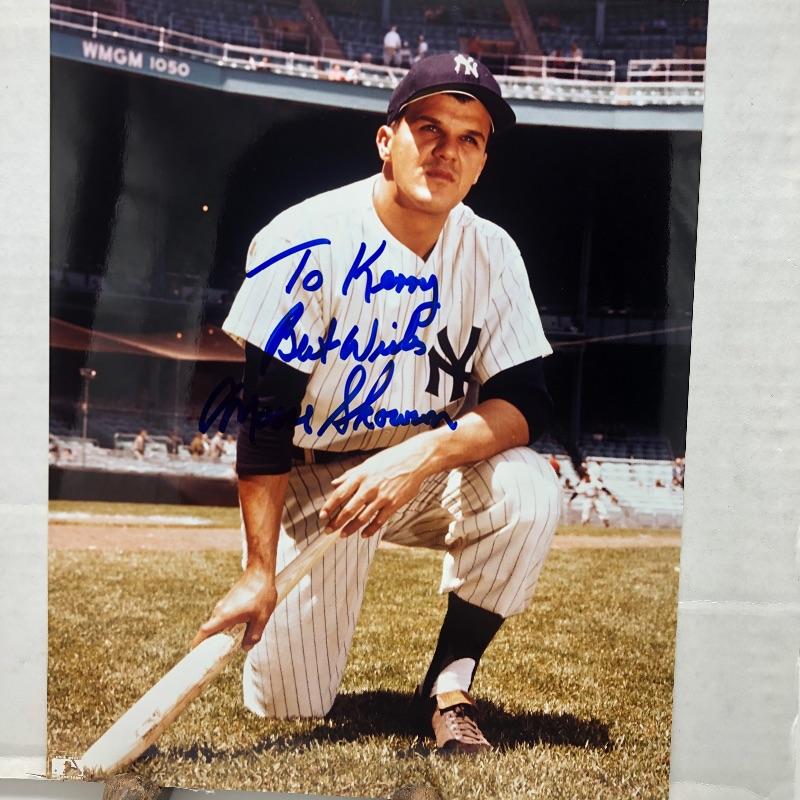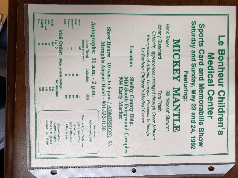 This lot includes five signed photos that appear to be from a Memphis Sports Card Show event in 1992. Looks like Mr. Kerry had five Yankees players autograph photos, including Mickey Mantle! Other signatures include Hank Bauer, Bill "Moose" Skowron, Johnny Blanchard and Tom Tresh. We've included some Mickey Mantle collectible cards in this lot as well.
