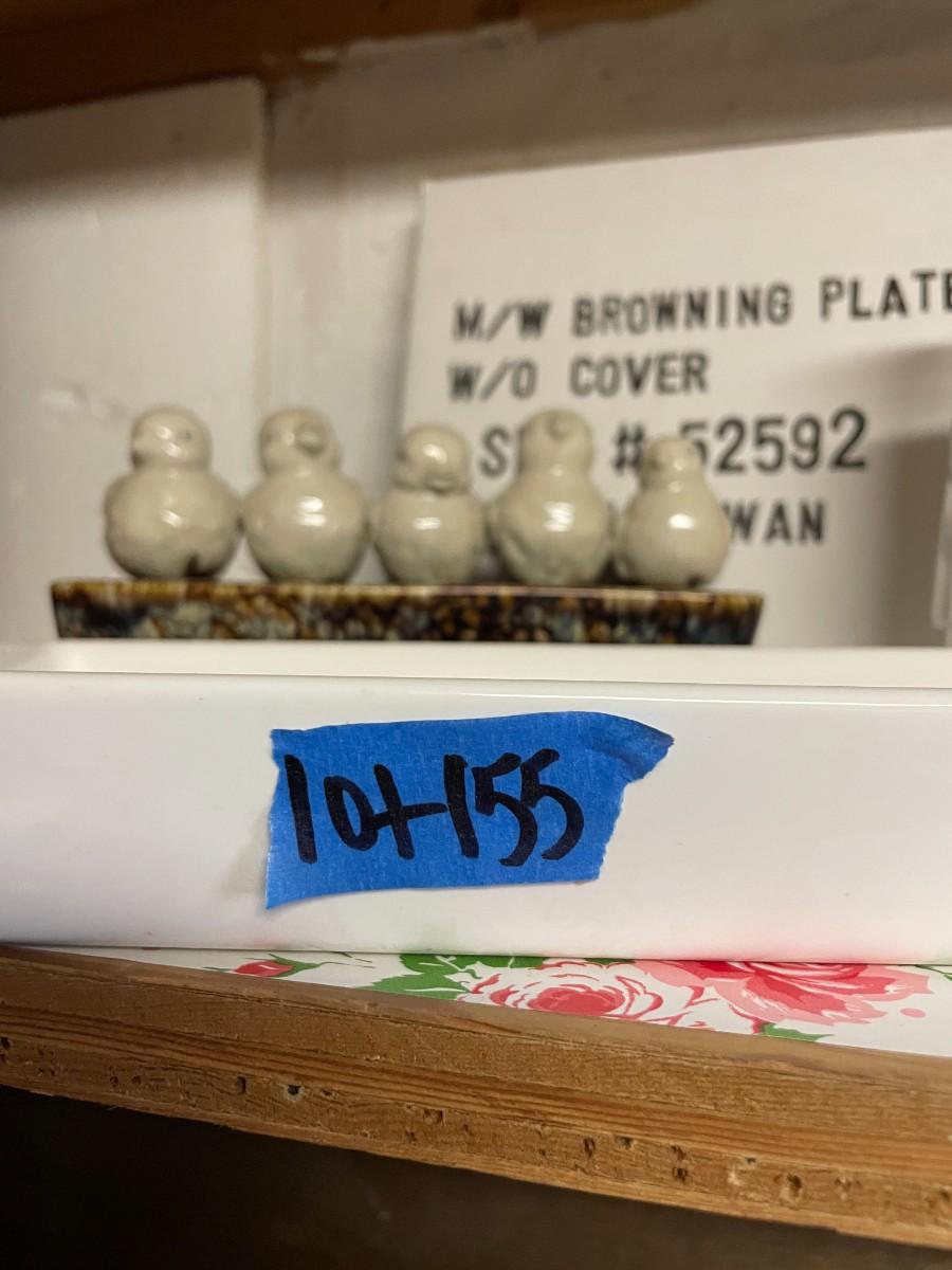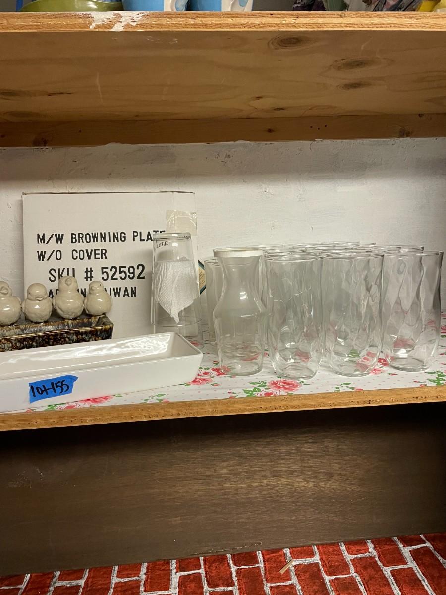 lot 155- misc. glasses, ceramic bird decor, pfaltzgraft USA plate, plate
