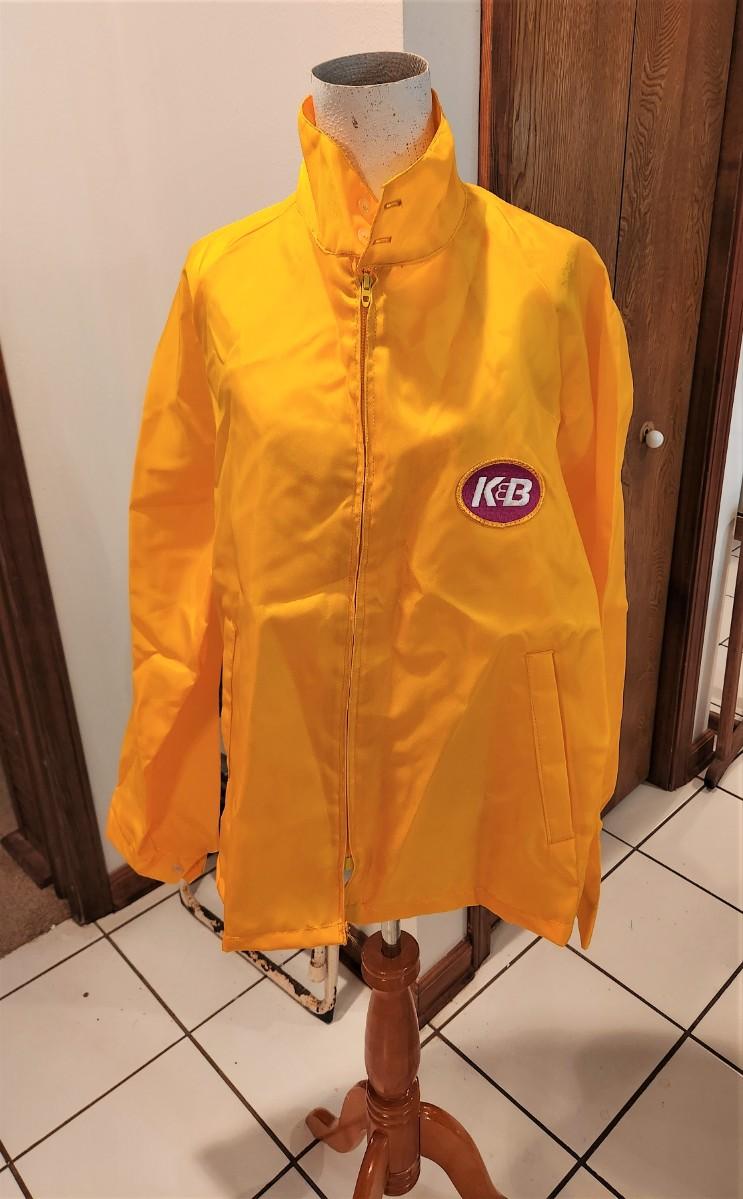 New old stock, never worn, K&B windbreaker (used by employees). Size Large, 27" long, 19" across the shoulders.
