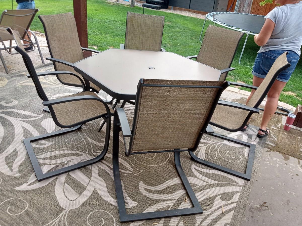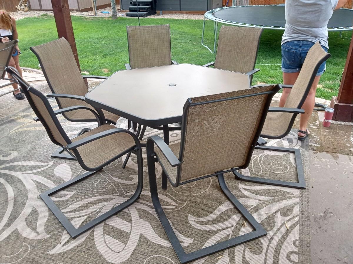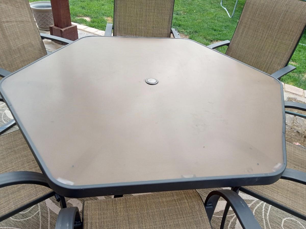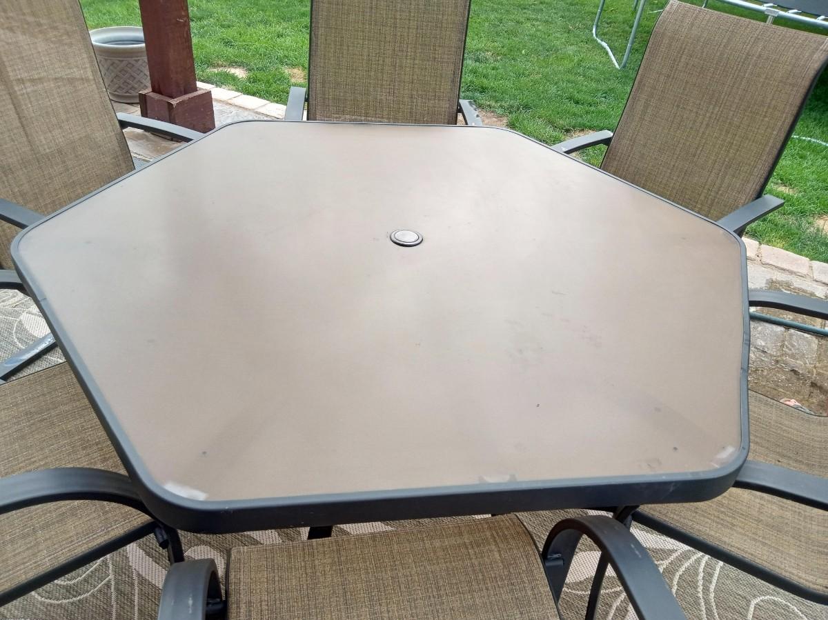 LOT 155  OCTAGON SHAPED PATIO TABLE WITH 6 CHAIRS
