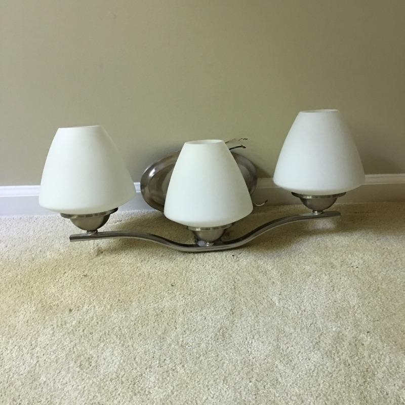 shades are missing. Lights measure 8” x 20” x 7.5” without glass shades.