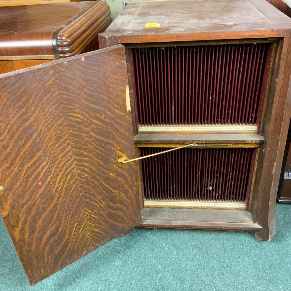 Nice Victrola Stand with great storage. //::\\ Please see photos for details and condition. No attempt has been made to hide any imperfections. All items listed in this auction are warehouse items, and need to be cleaned. A majority of the items need restoration as well. All items are sold AS IS and WITHOUT GUARANTEE. If you are uncertain about an item, DO NOT BID. Due to the nature of this online auction in-person inspection is HIGHLY recommended. All Sales are FINAL. Pick Up Times are FIRM. Please confirm with your own schedule that you can pick up in the scheduled times listed in the Terms and Conditions. Any questions please message the auctioneer. DO NOT Contact The Harp Gallery.