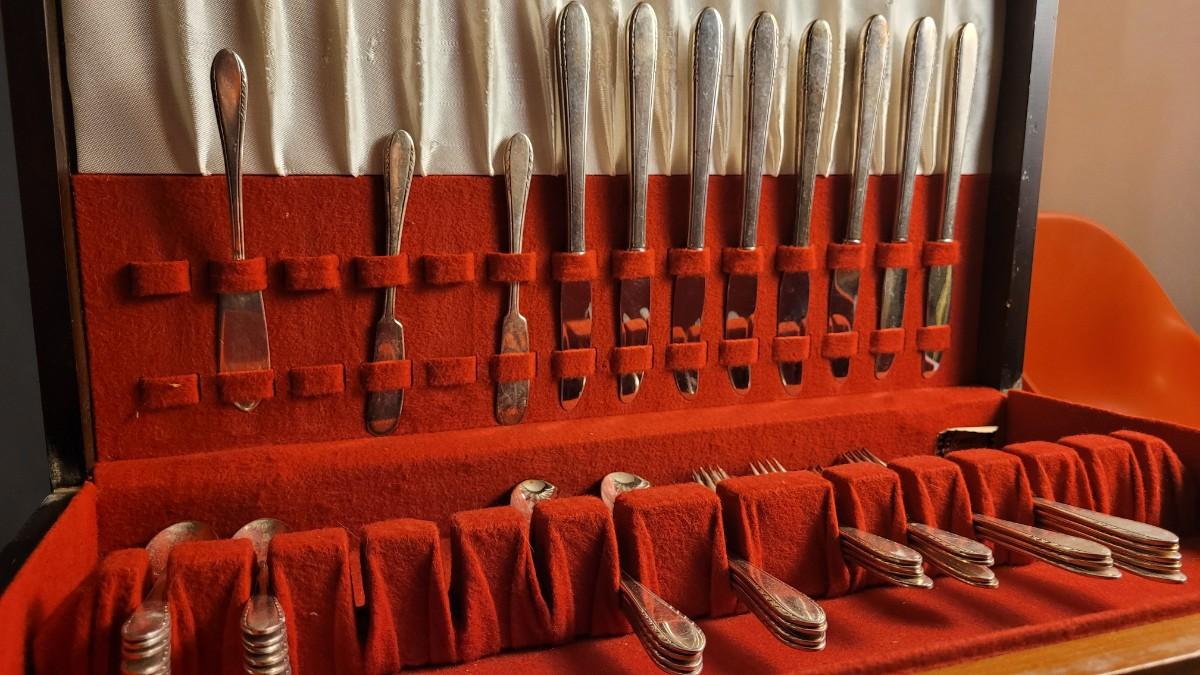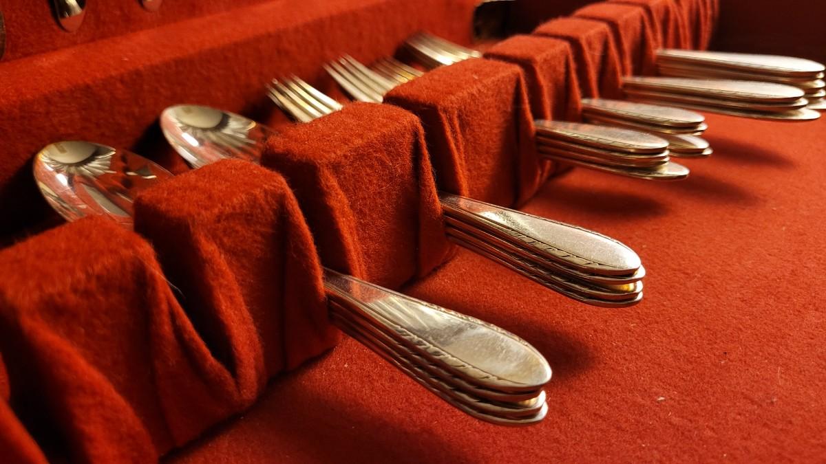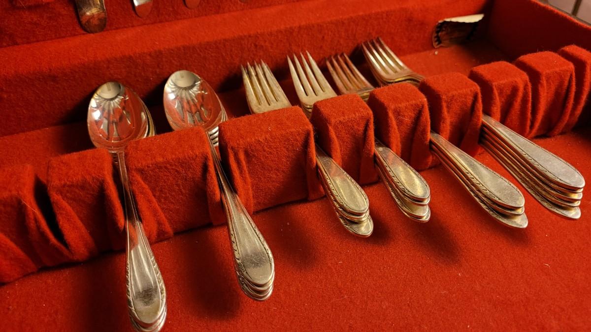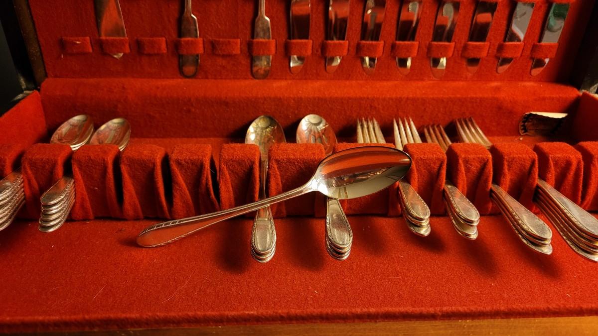 Lot 155: Vintage HOLMES Silverplated Flatware Set w/ Case