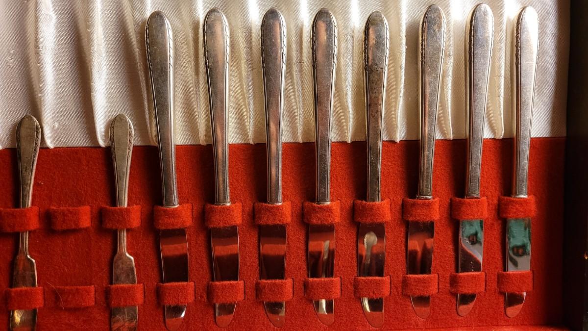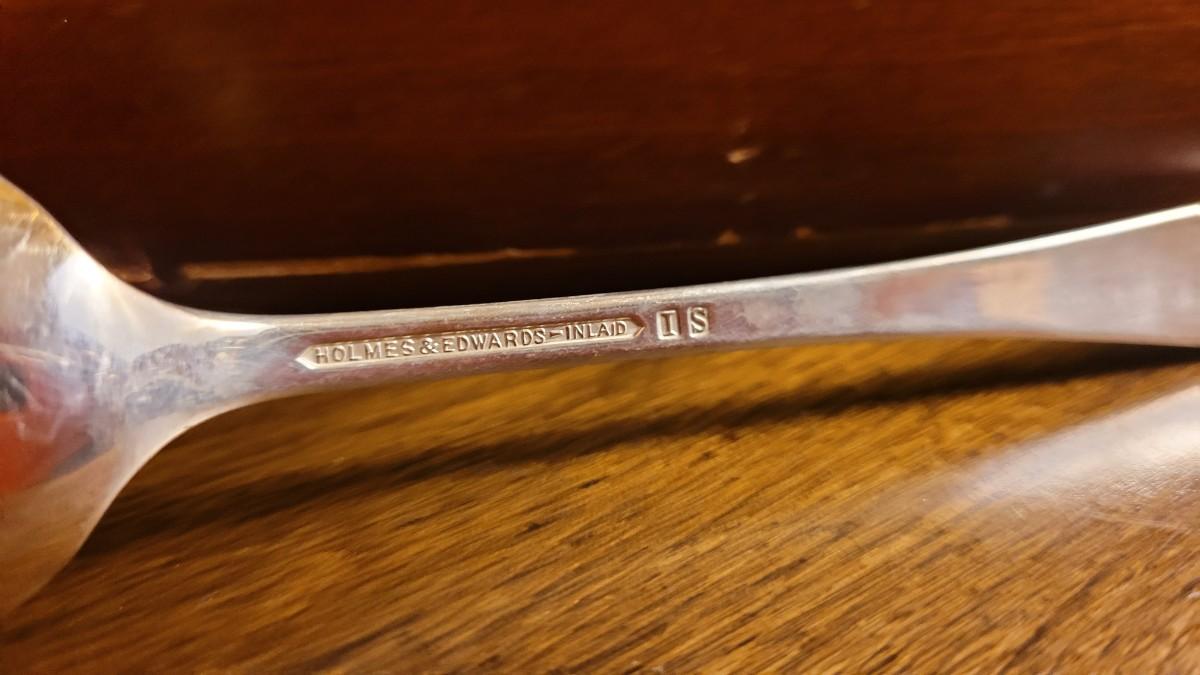 This lot features a Vintage Set of Silverplated INLAID SILVER HOLMES Flatware. Case is Included. 48 Pieces total. (13) 6" Spoons, (8) 7.25" Spoons, (8) 6.75" Forks, (8) 7.5" Forks, (8) Butter Knives, (3) Jam Spread Accessories.