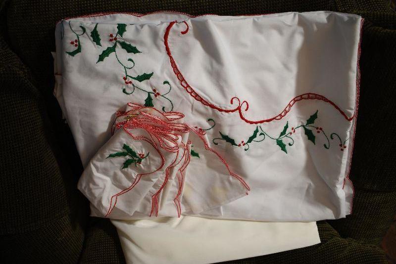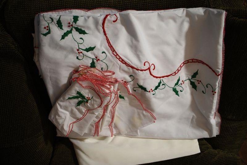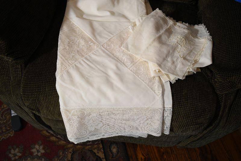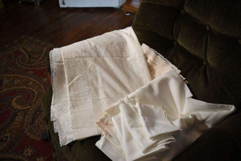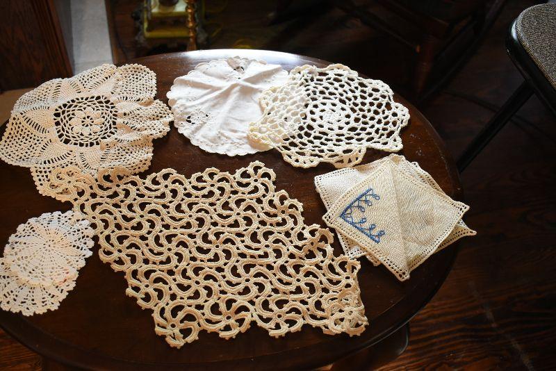 Handcrafted doilies, lace trimmed table cloths and napkins.