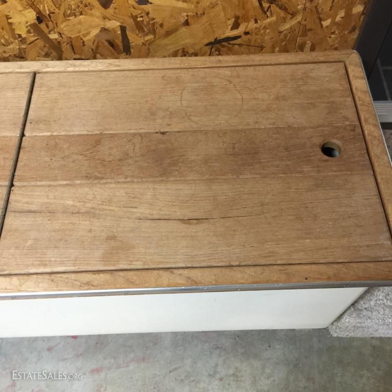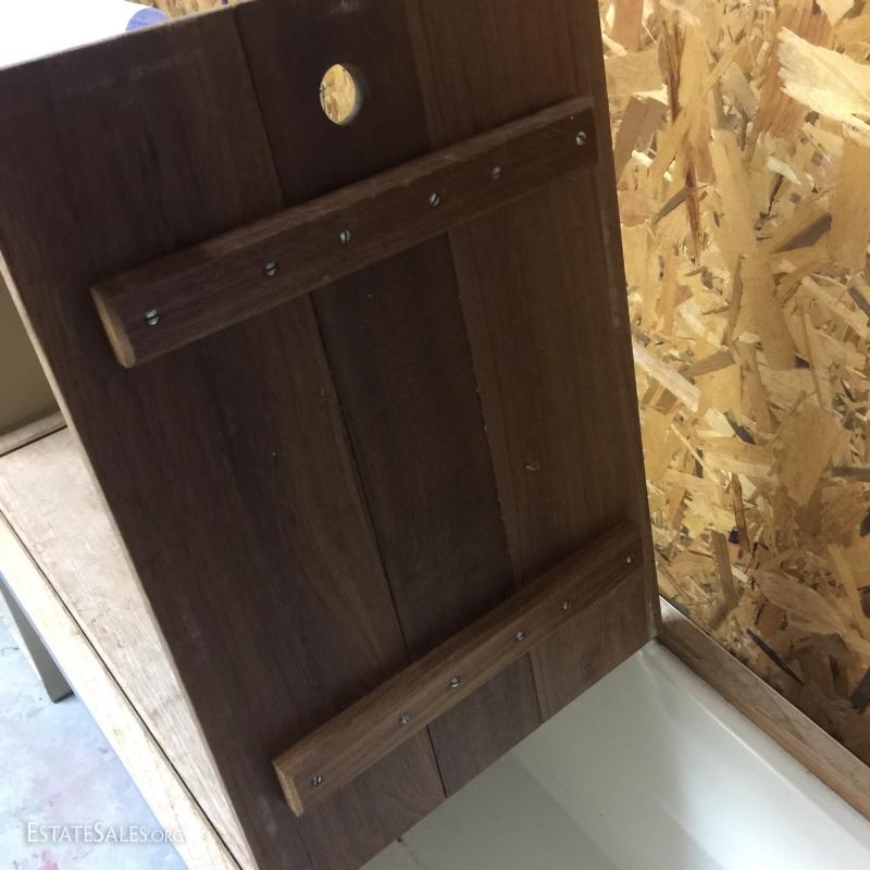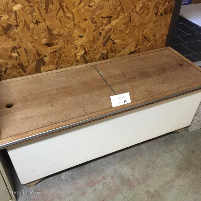 Fabulous cooler with teak wood top. Hinged with double sided lifts. Made for a deck or boat: 48" L x 18" W x 19" H