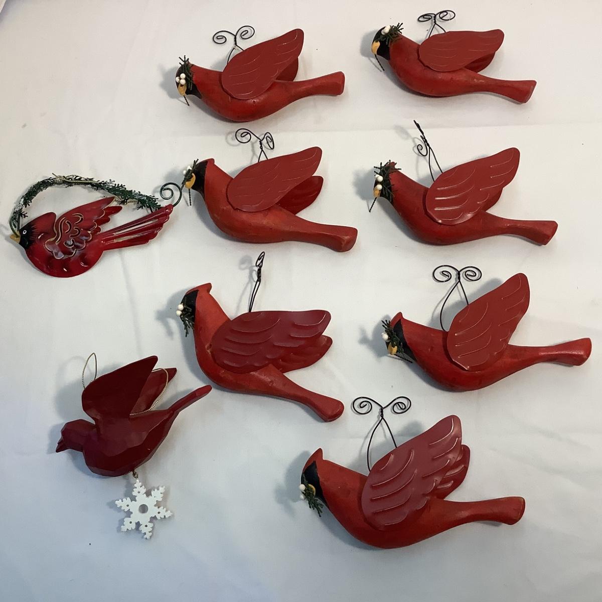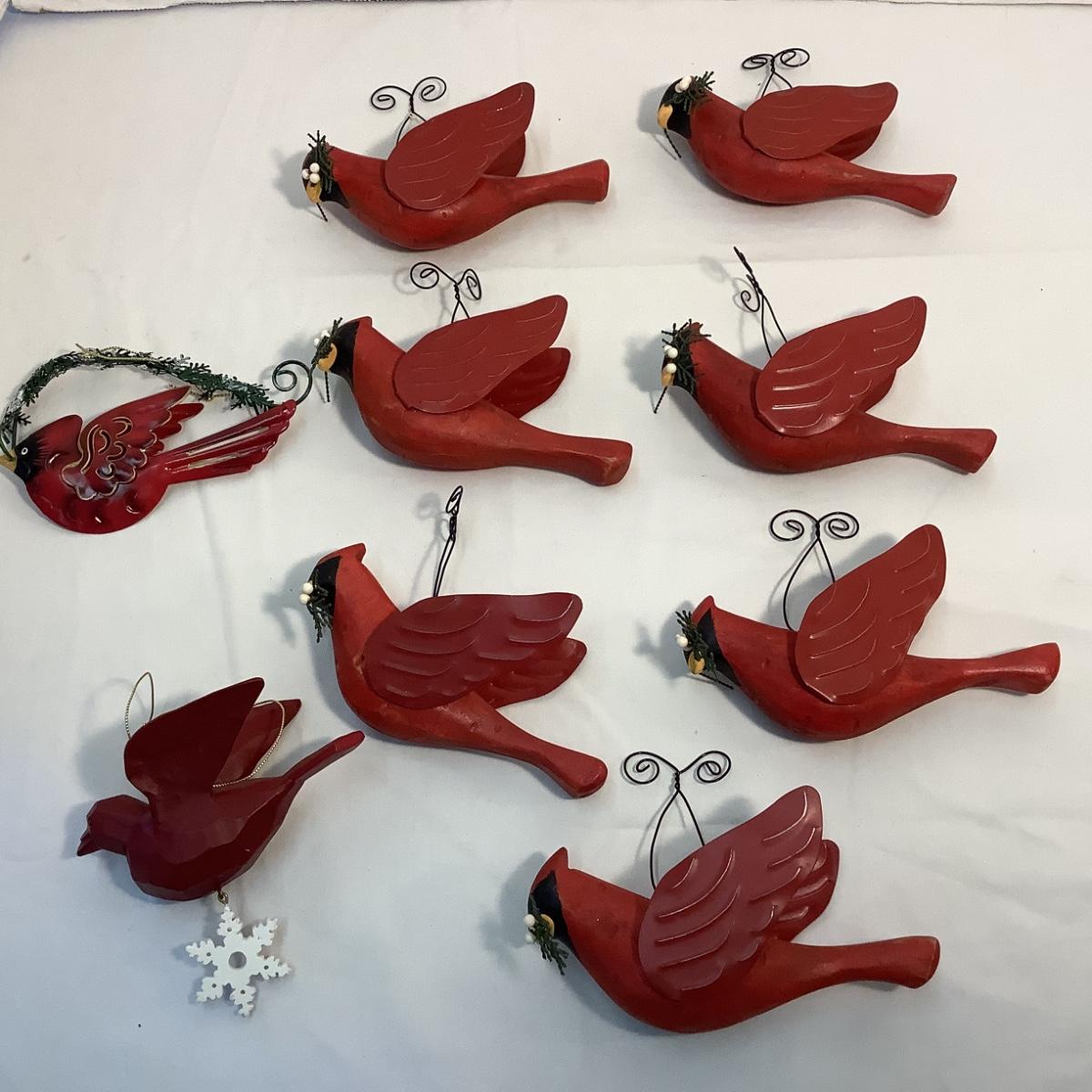 Lot of Wooden/Metal Cardinal Ornaments -