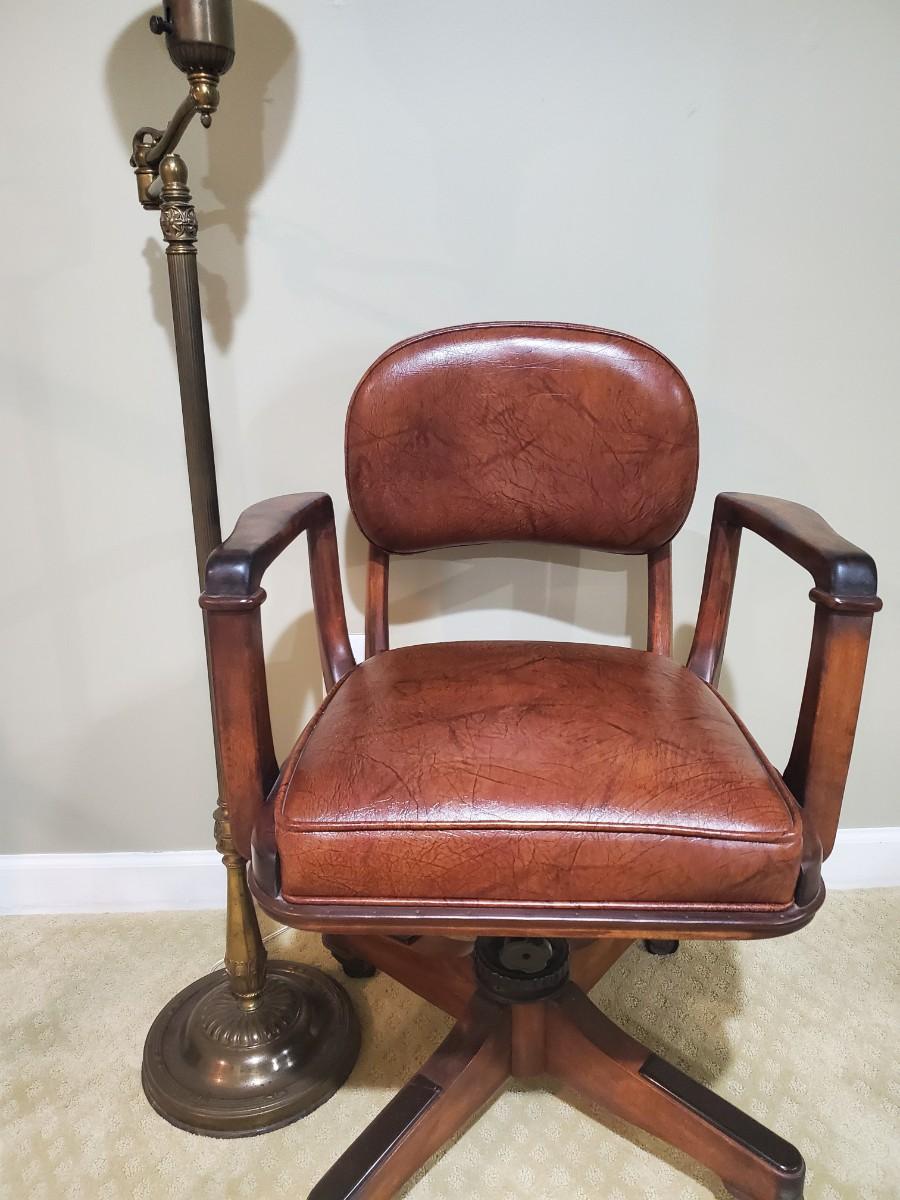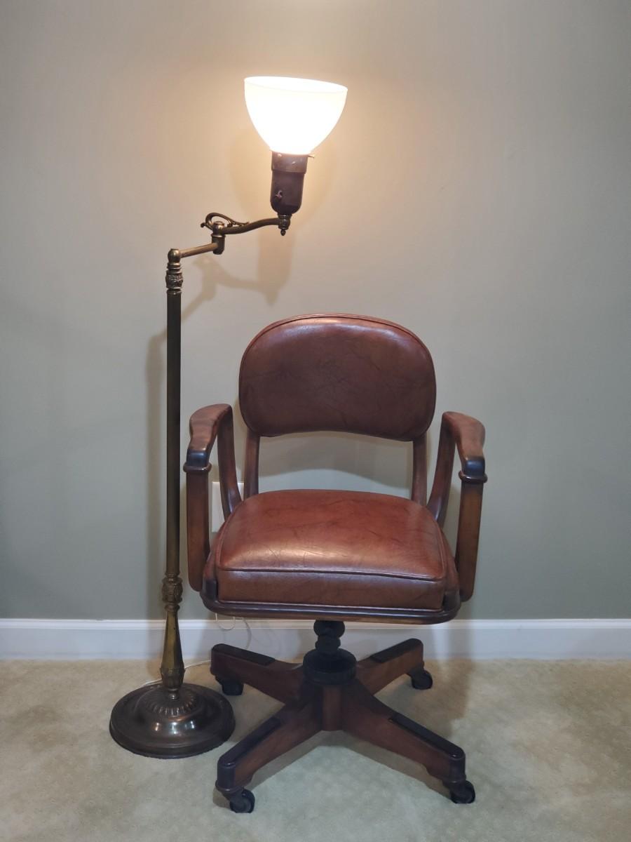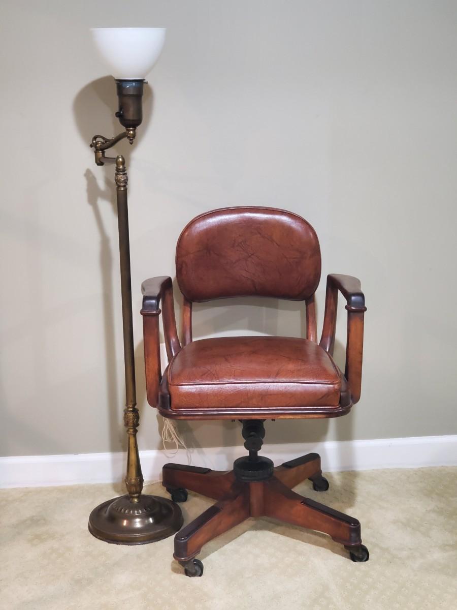 LOT 155G: Antique Sykes Office Chair and Vintage Floor Lamp
