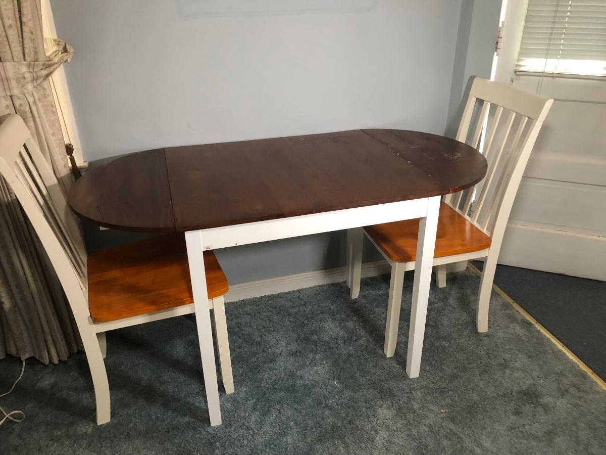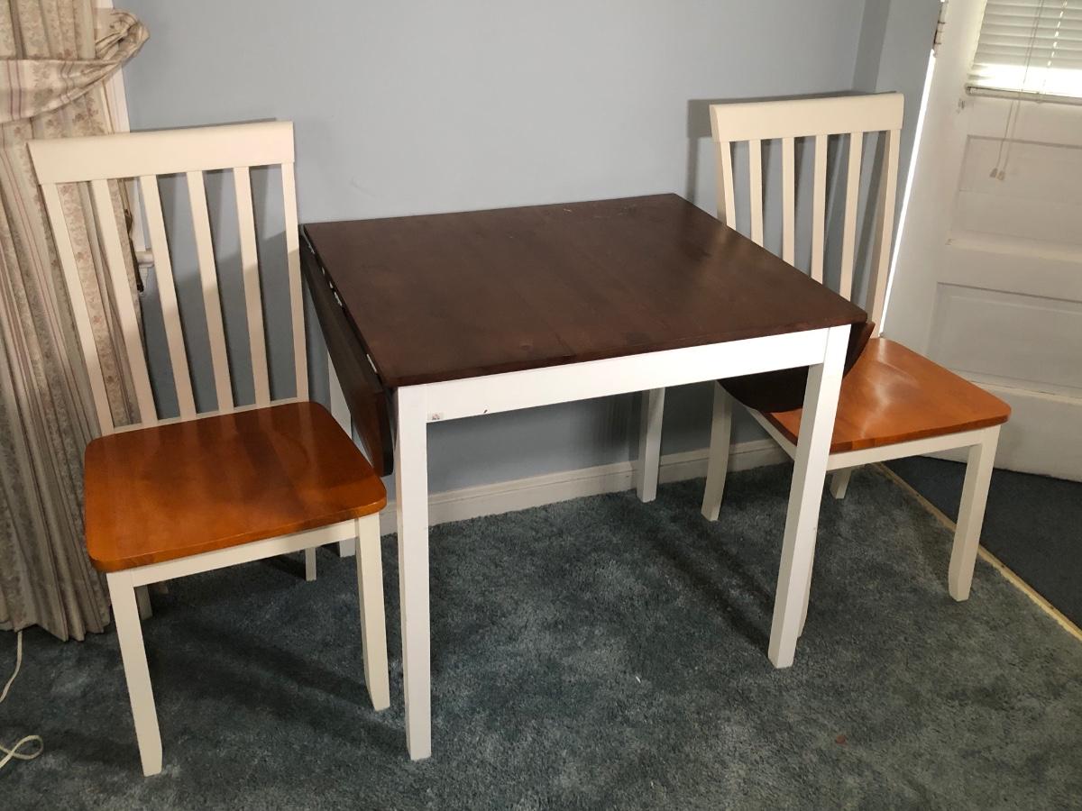 LOT 155L: Drop Leaf Kitchen Table w/ 2 Chairs