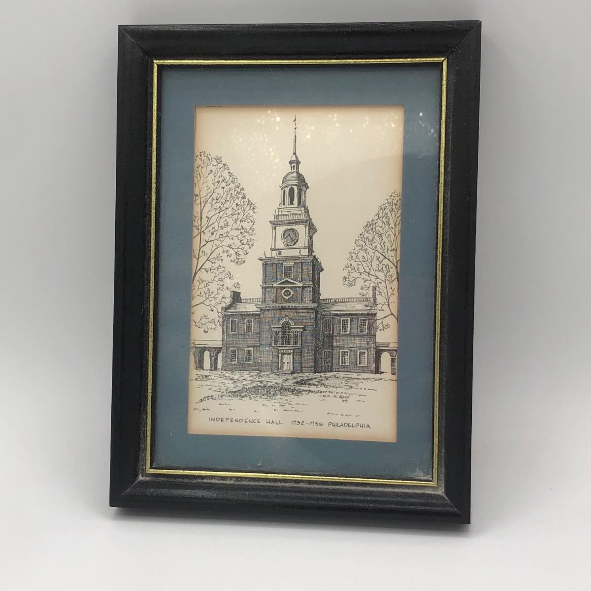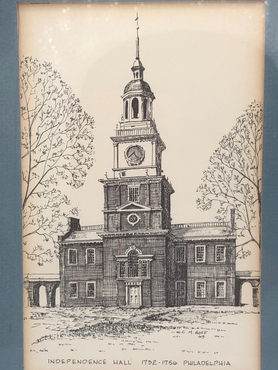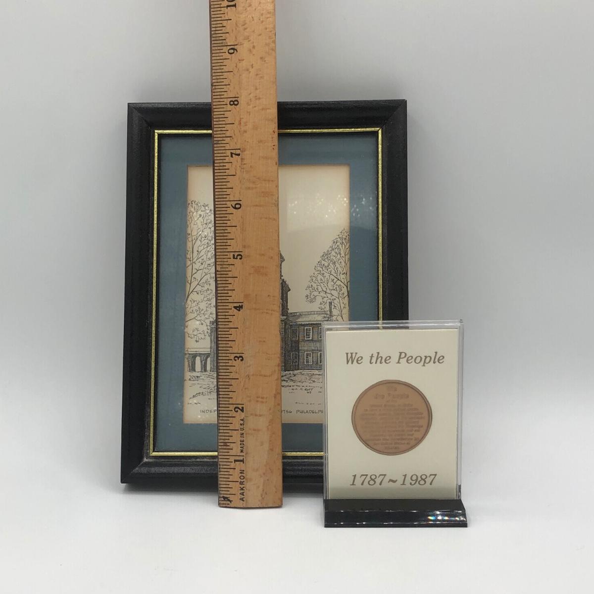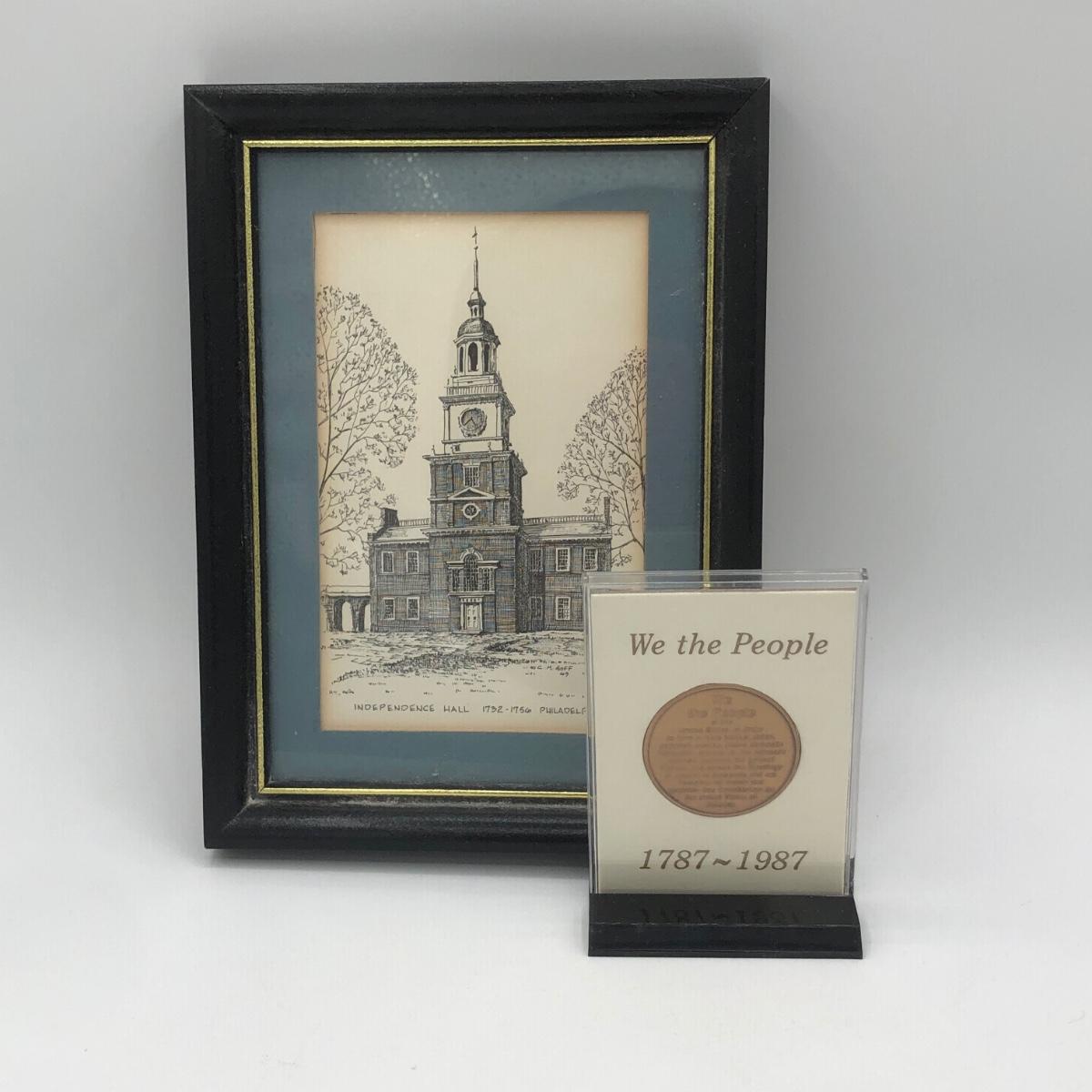 LOT 156K: "We the People" Commemorative US Bicentennial Coin in Display Case & Clark M Goff Independence Hall Framed Art Print