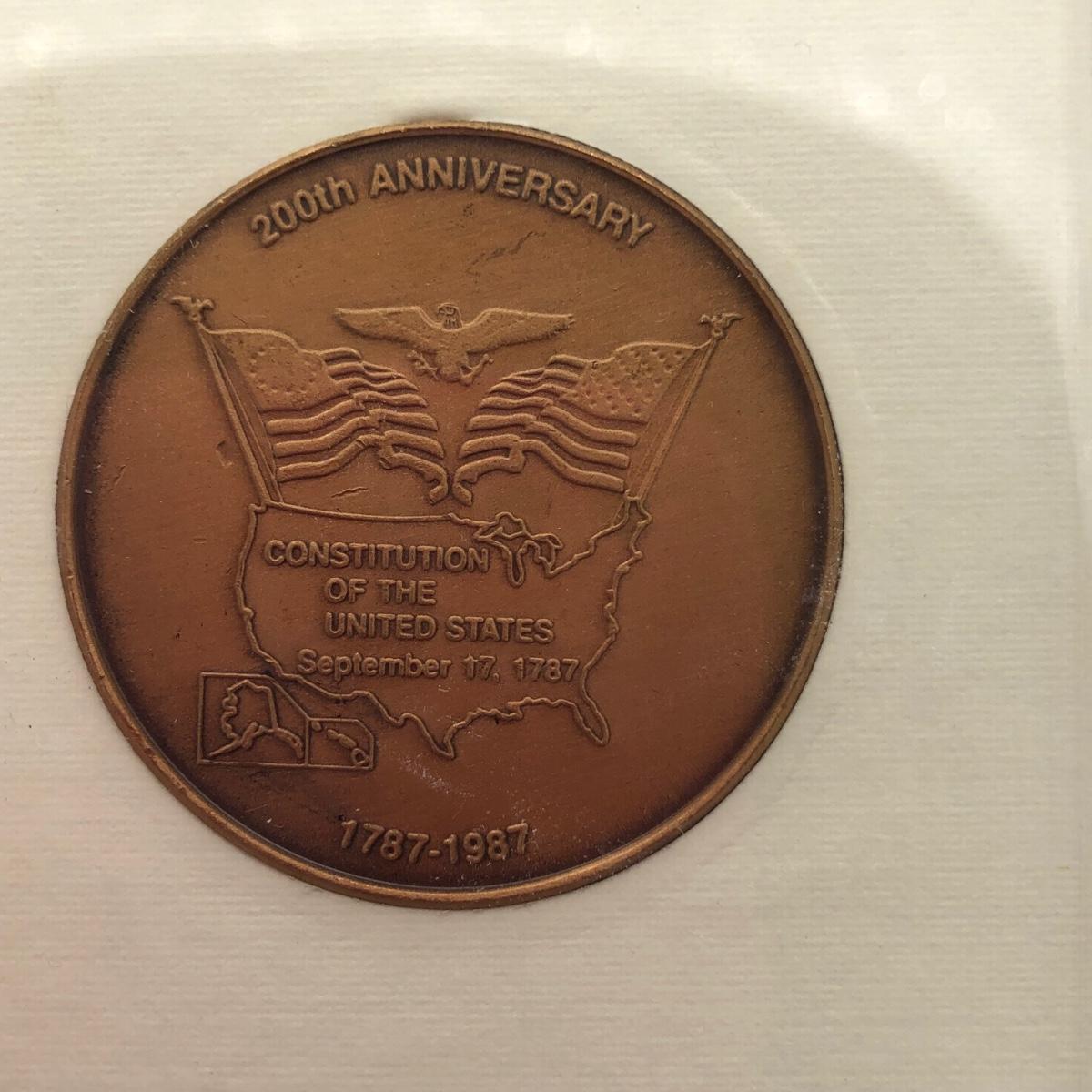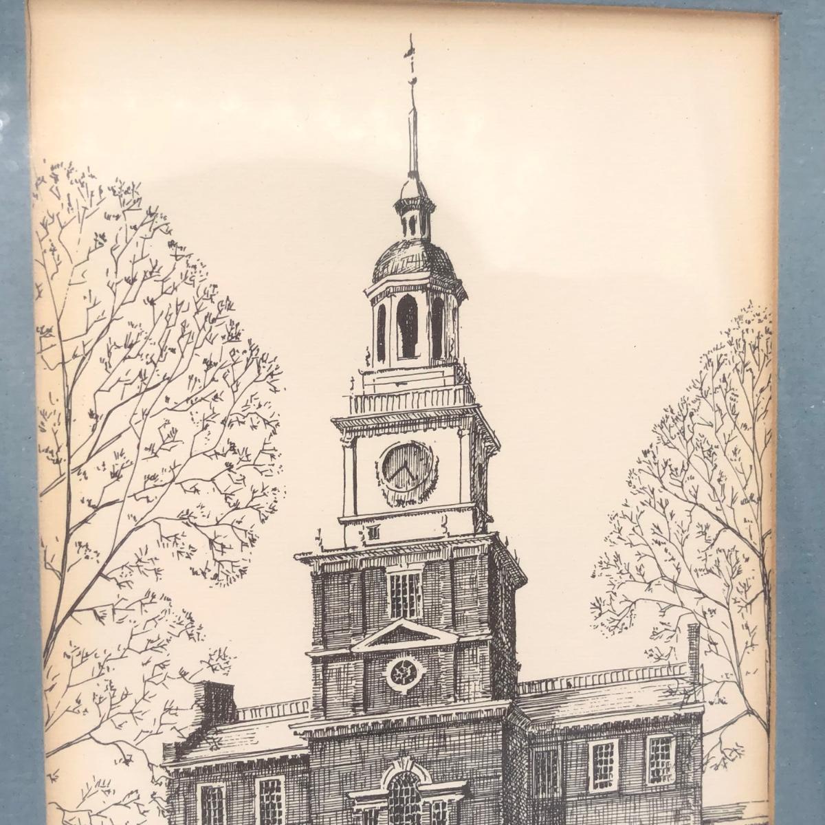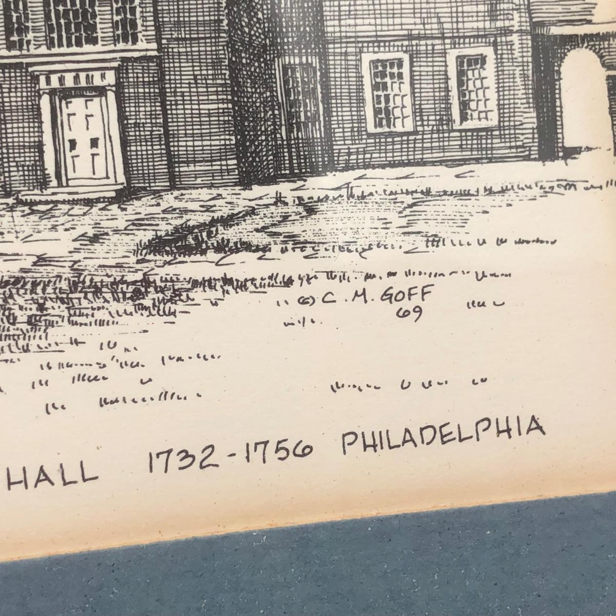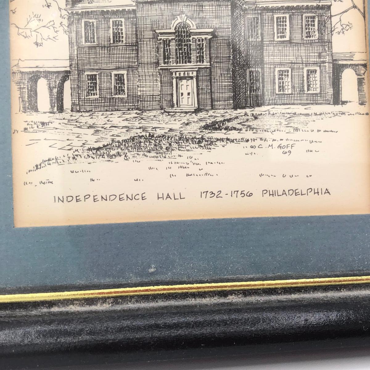 LOT 156K: "We the People" Commemorative US Bicentennial Coin in Display Case & Clark M Goff Independence Hall Framed Art Print