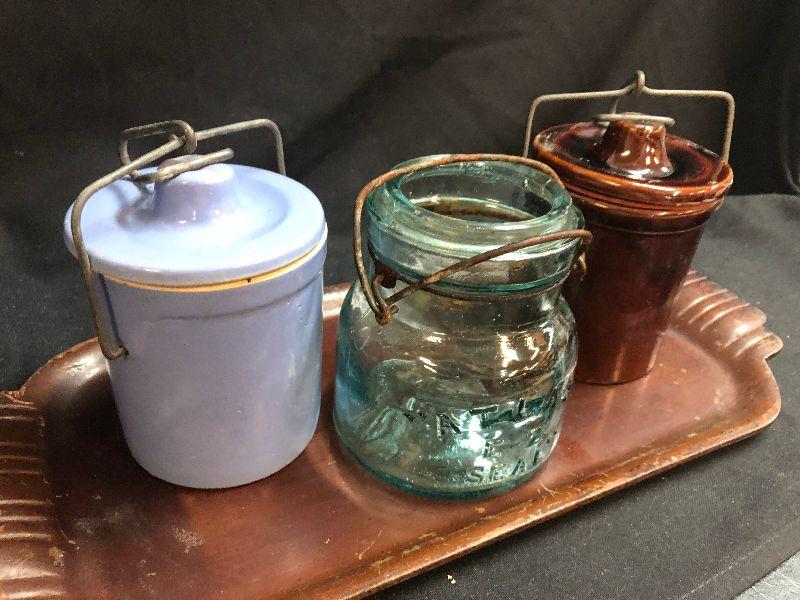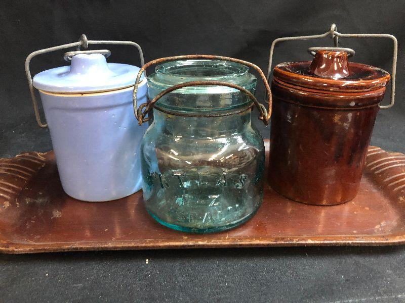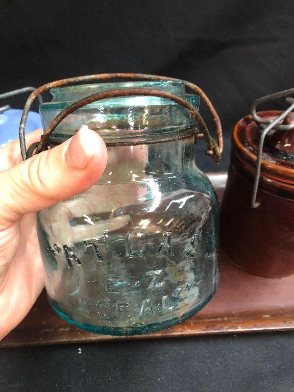 Lot 156: Vintage Pottery Jars and Atlas Glass